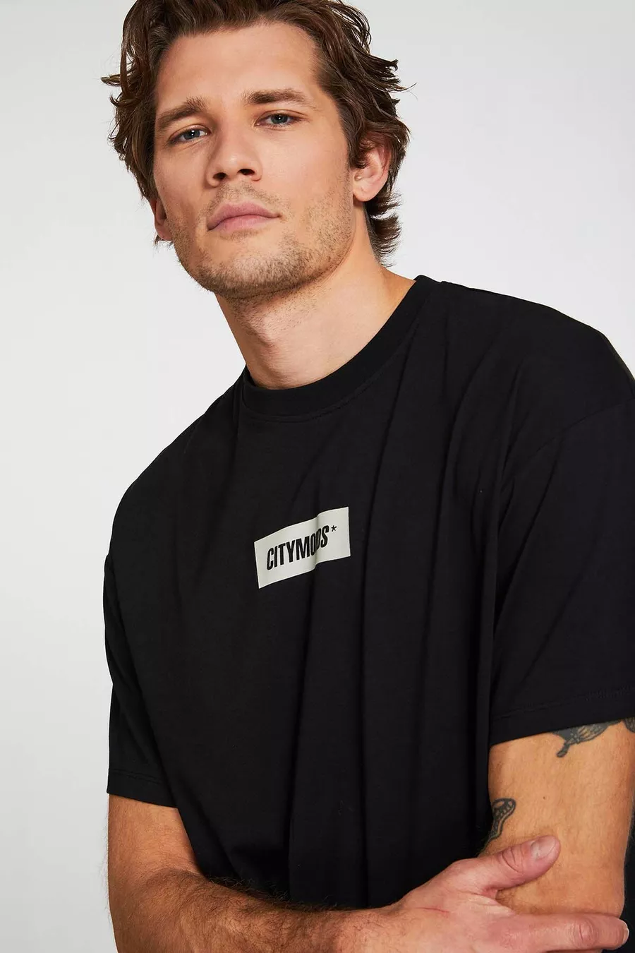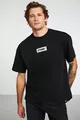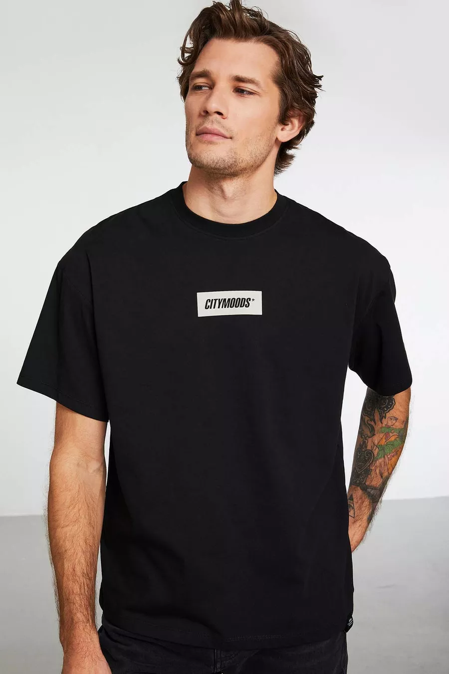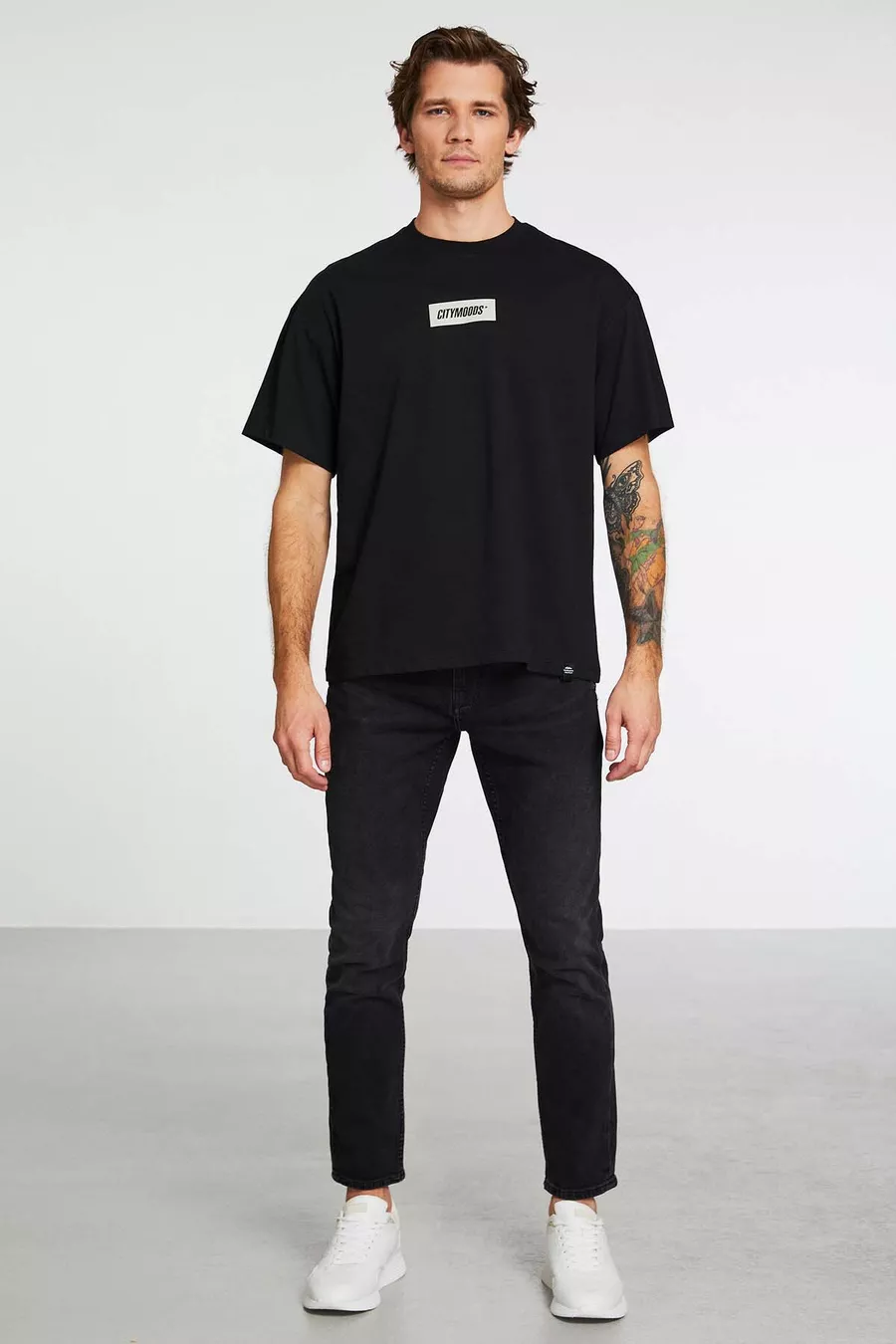 Maglietta Oversize Nera da Uomo Inventıon in Cotone % Organico con Tessuto Spesso e Dettagli di Stampa