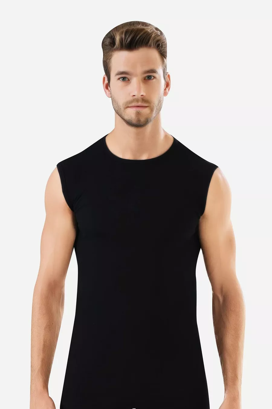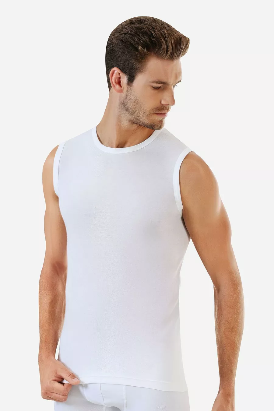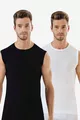 Maglietta Uomo Bianca - Nera, Maniche Corte, Scollo Tondo, Canotta Senza Maniche 2 Pezzi, % Cotone