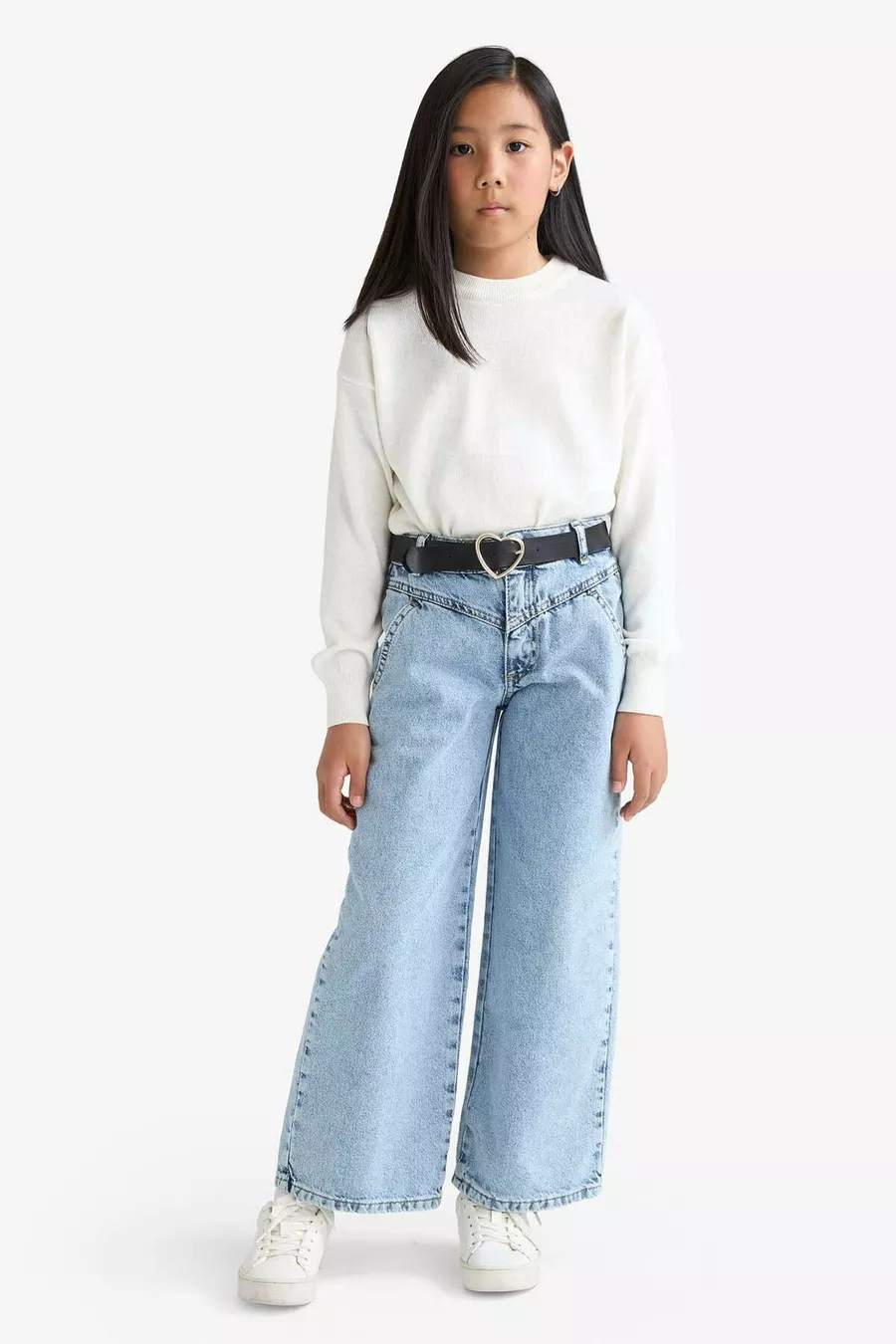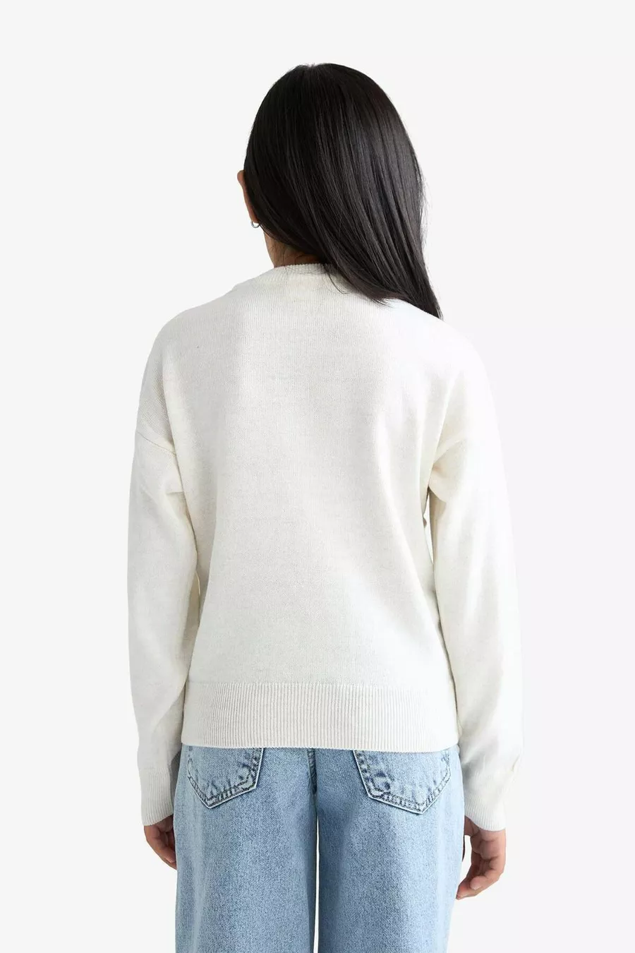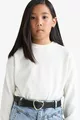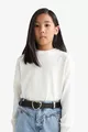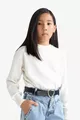 Maglione Basic a Tinta Unita con Girocollo a Giro per Bambina, Taglio Standard, Colore Ecru AU