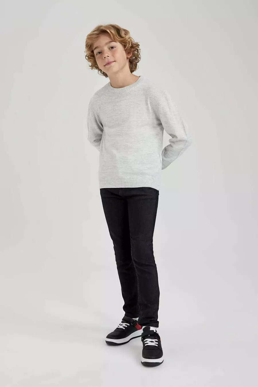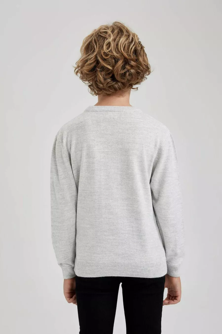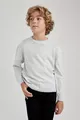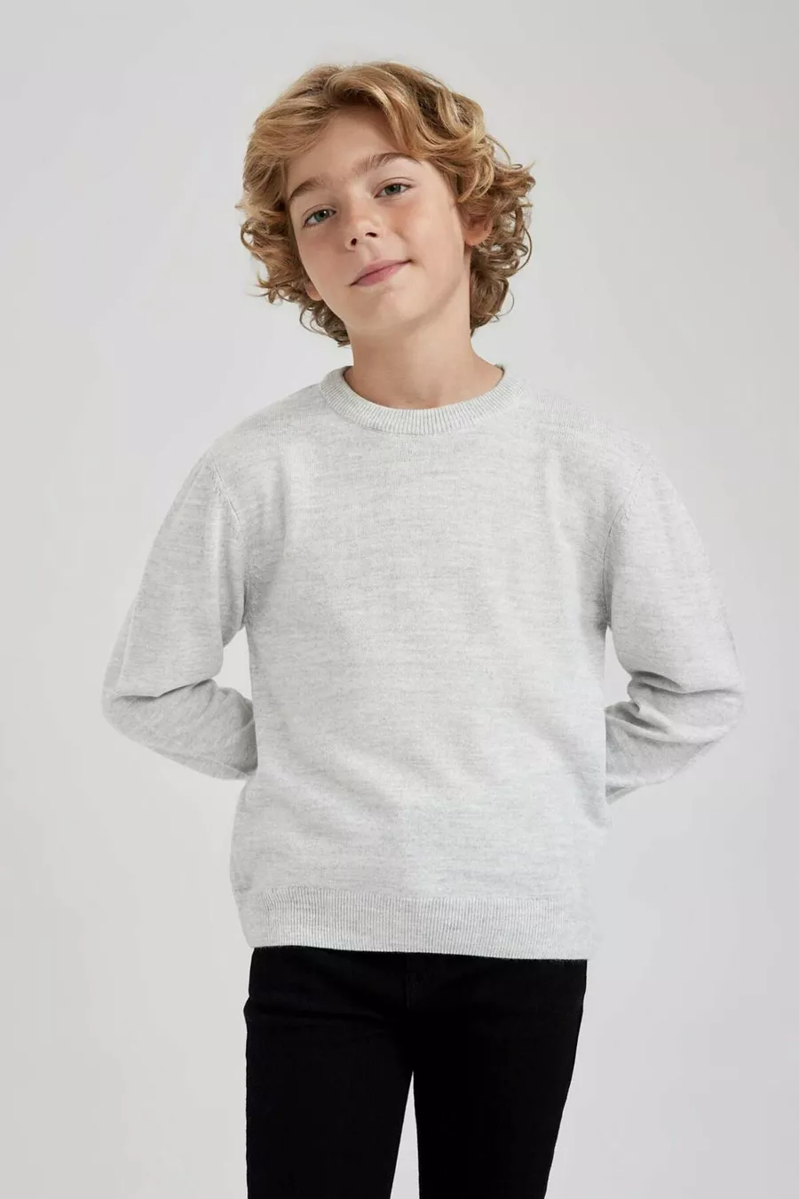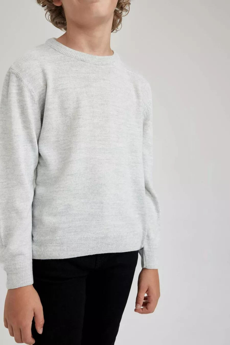 Maglione Basic Girocollo Liscio in Maglia Grigia Ottica da Bambino Maschio WN