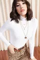 Maglione da donna bianco a mezza alto collo in maglia lucida