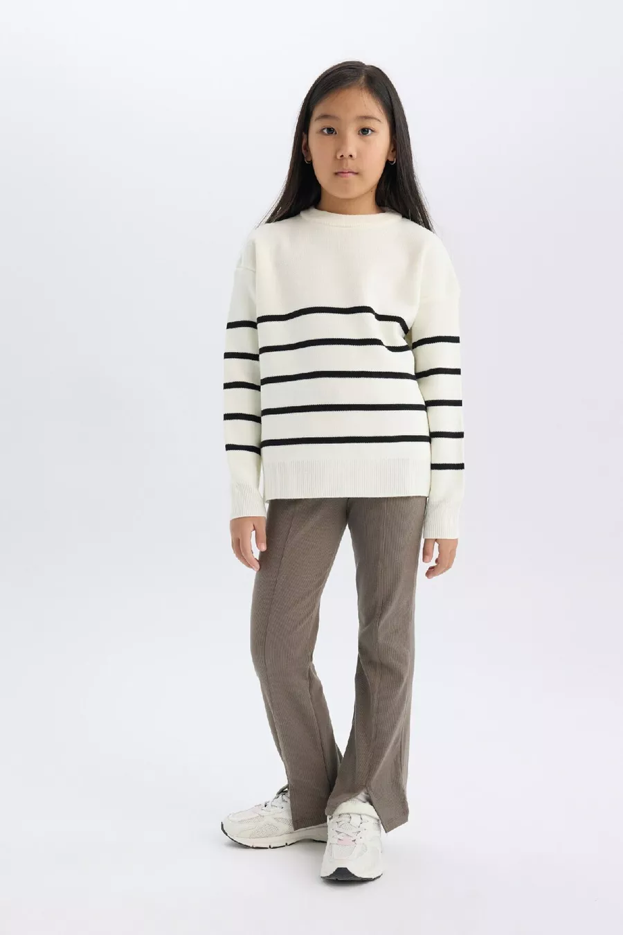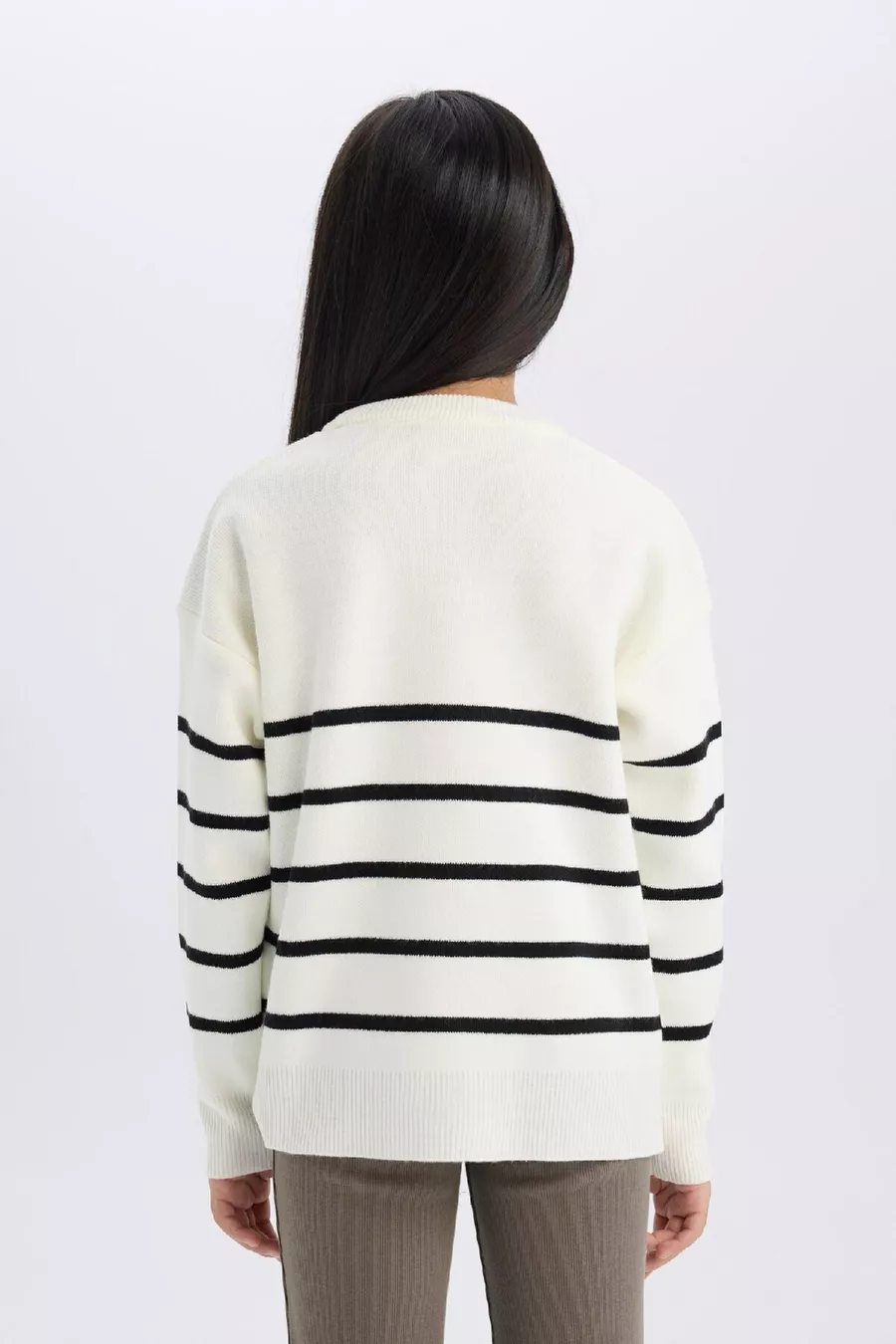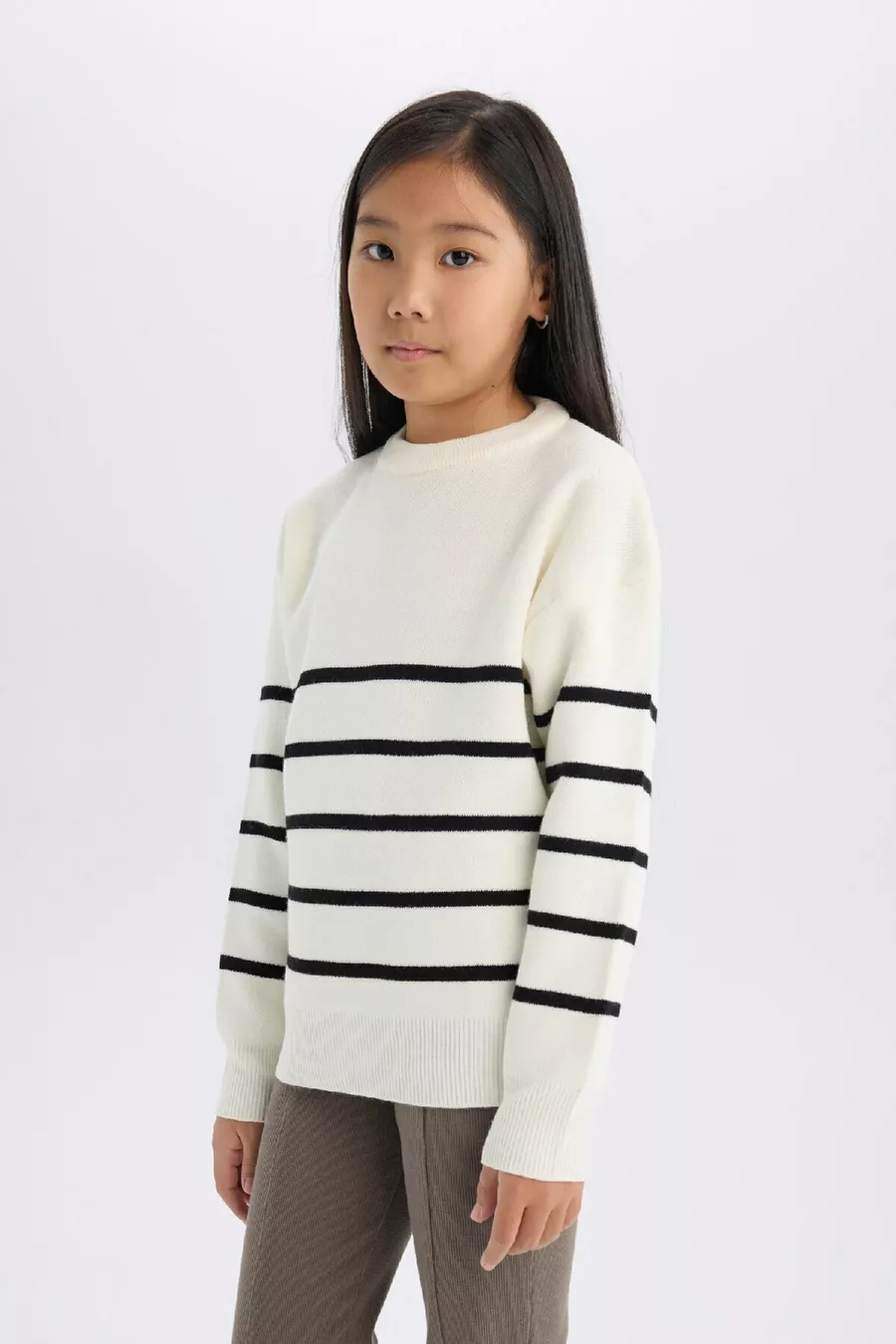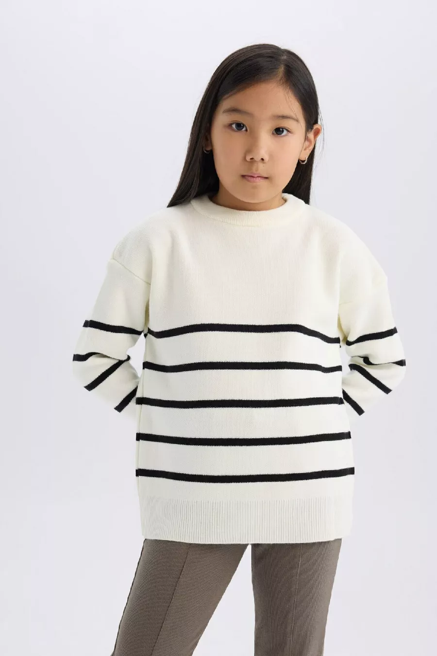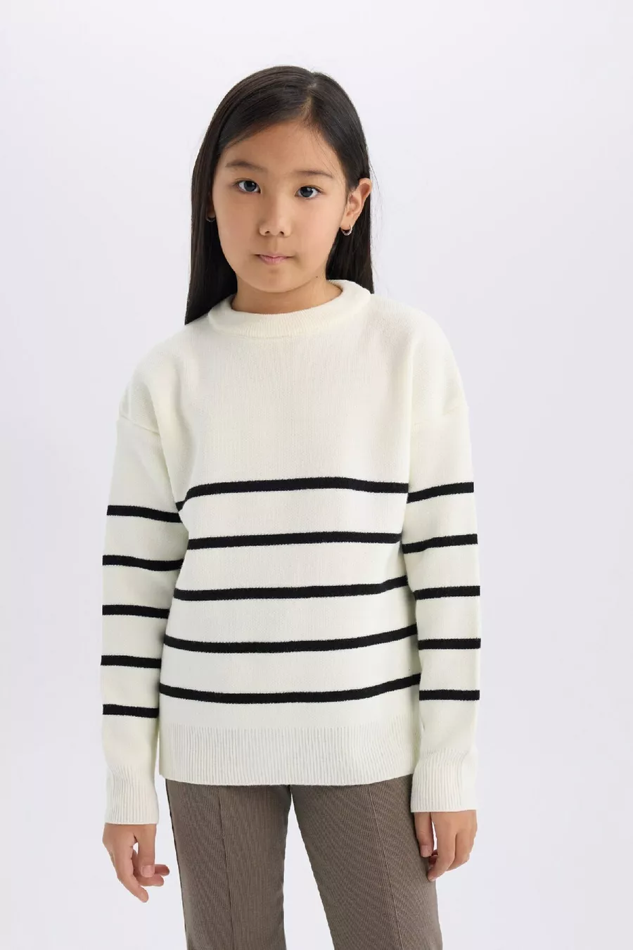 Maglione da scuola in maglia con girocollo a righe panna per bambina au