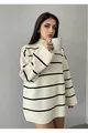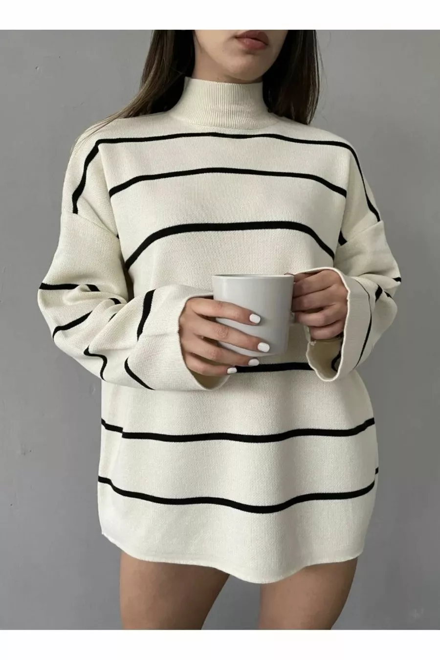 Maglione da donna, maglione oversize a righe con collo alto a mezza altezza, maglione a righe, maglione oversize