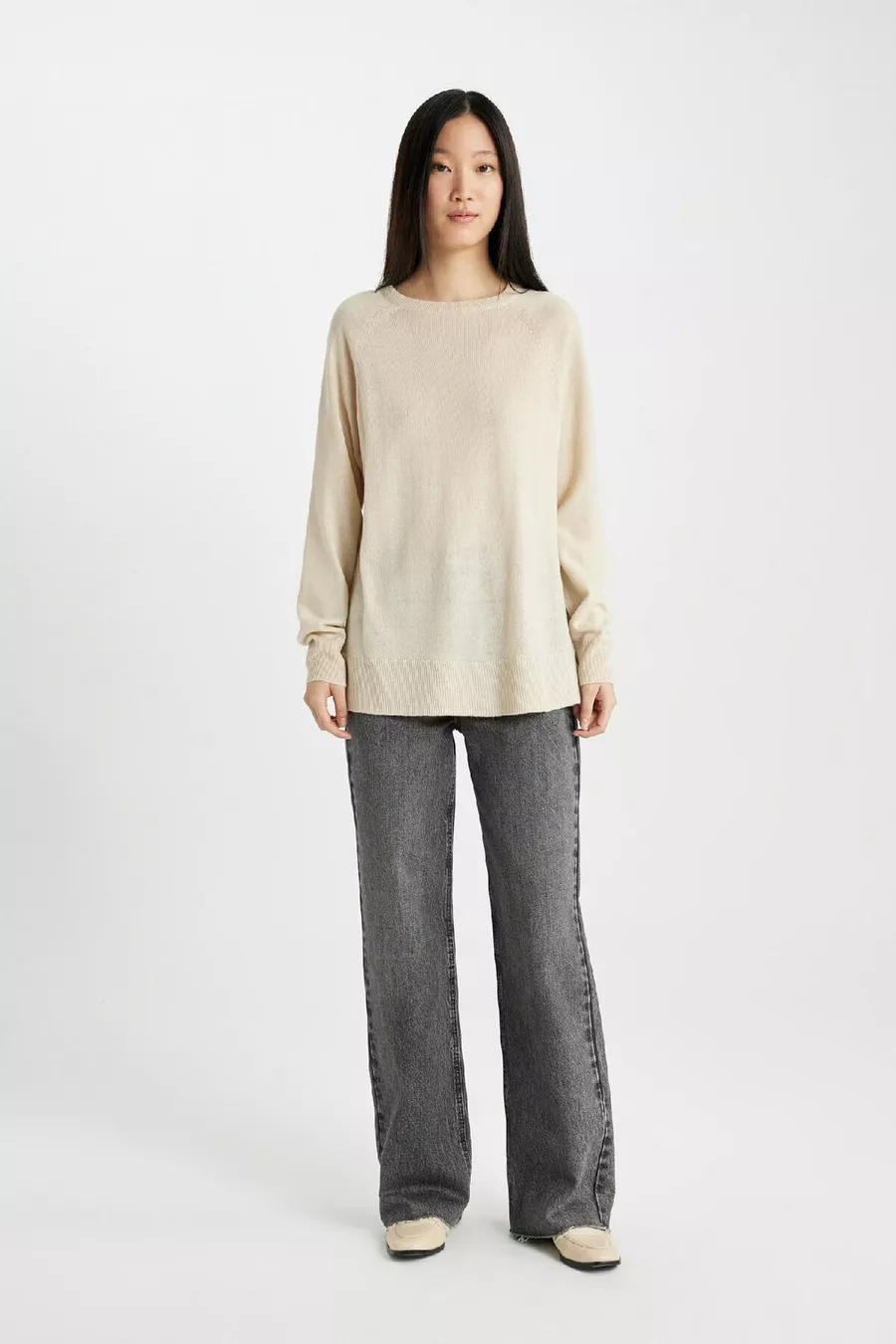 Maglione Girocollo Basic in Maglia Liscia a Tessuto Morbido Regular Fit wn