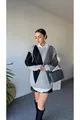 Maglione Oversize Donna Girocollo con Motivo a Diamante Grigio