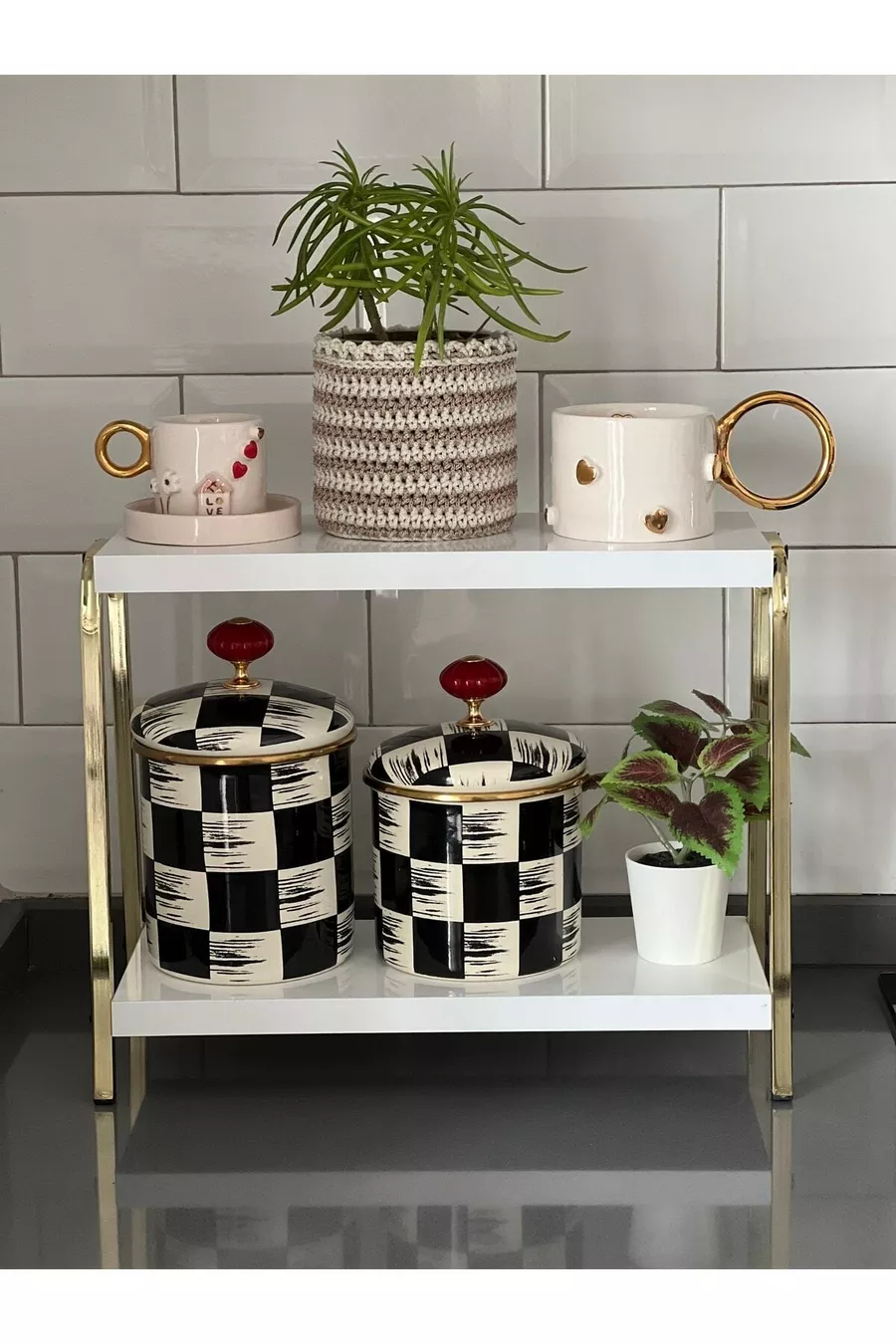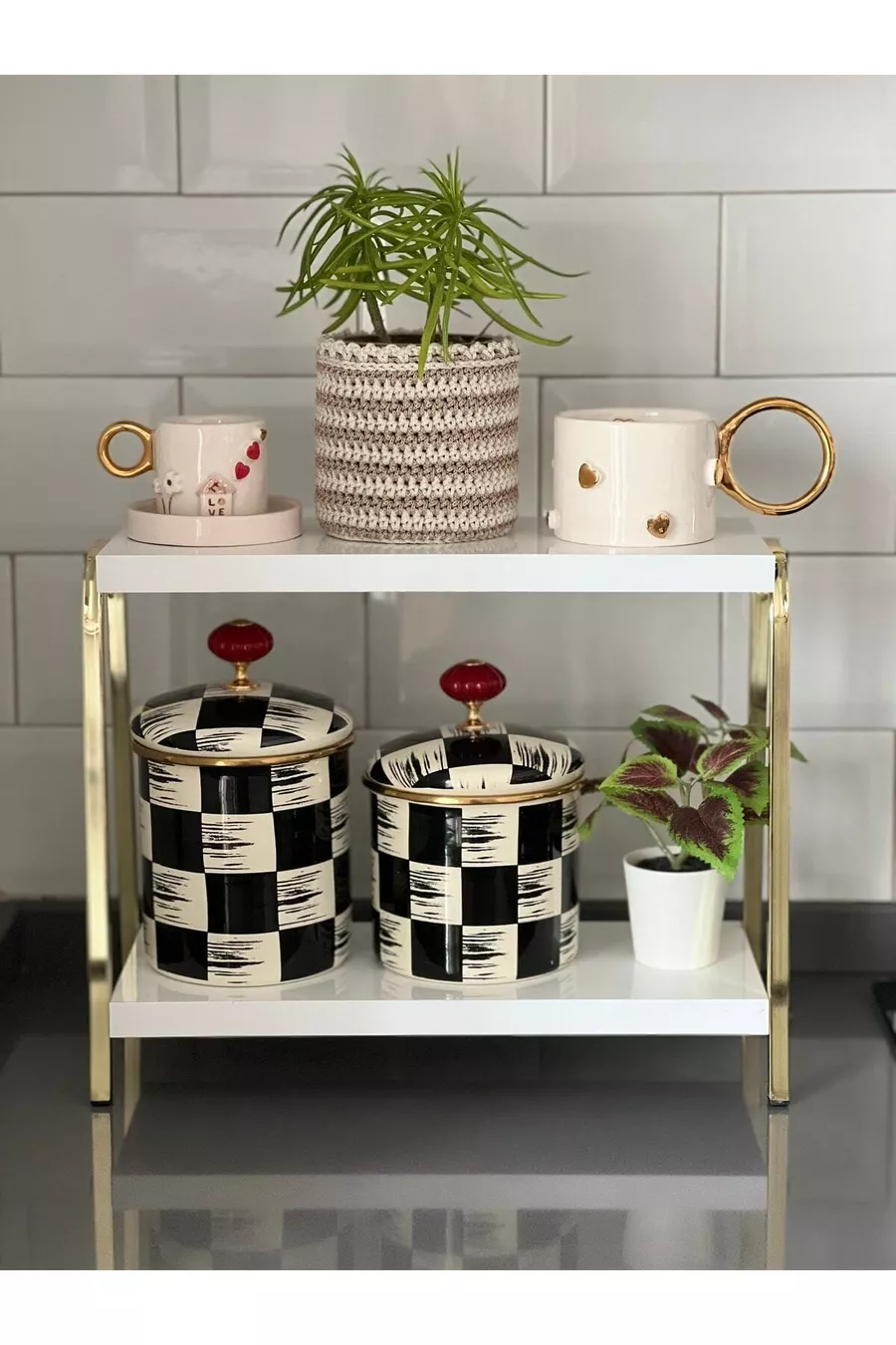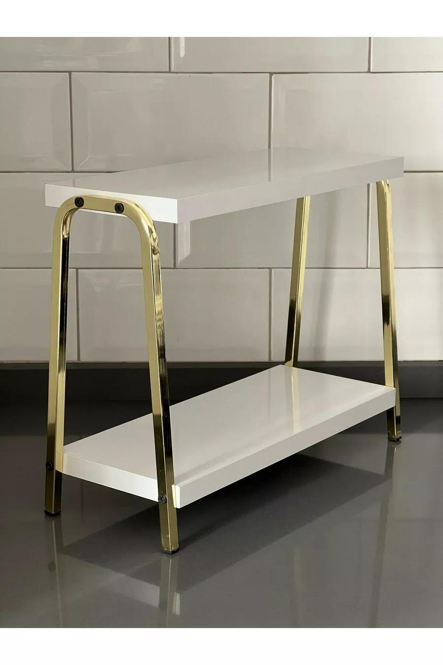 Mensola da cucina dorata e bianca, mensola da banco, mensola angolo caffè, mensola da bagno, porta spezie