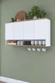 Materiale: Truciolato laminato Numero di cassetti: 1 Colore: Bianco Altezza: 62 cm Larghezza: 120 cm Profondità: 28 cm Durata della garanzia: 2 anni Stile: Moderno Tema / Stile: Moderno Origine: TR Caratteristica: Con gambe