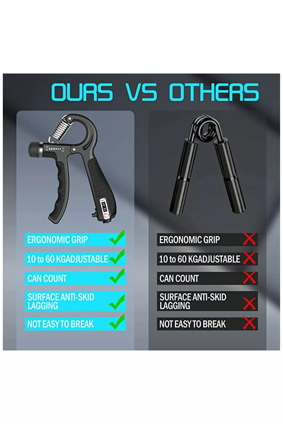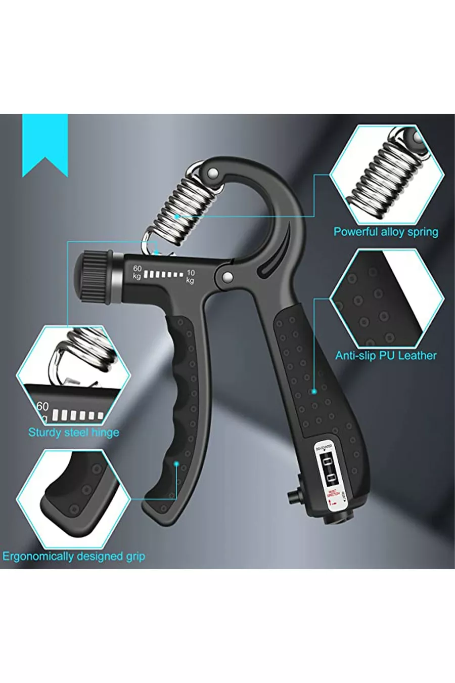 Molla a mano di alta qualità originale con contatore kg - 5 kg regolabile, 1 pezzo rinforzo per polso e muscoli della mano