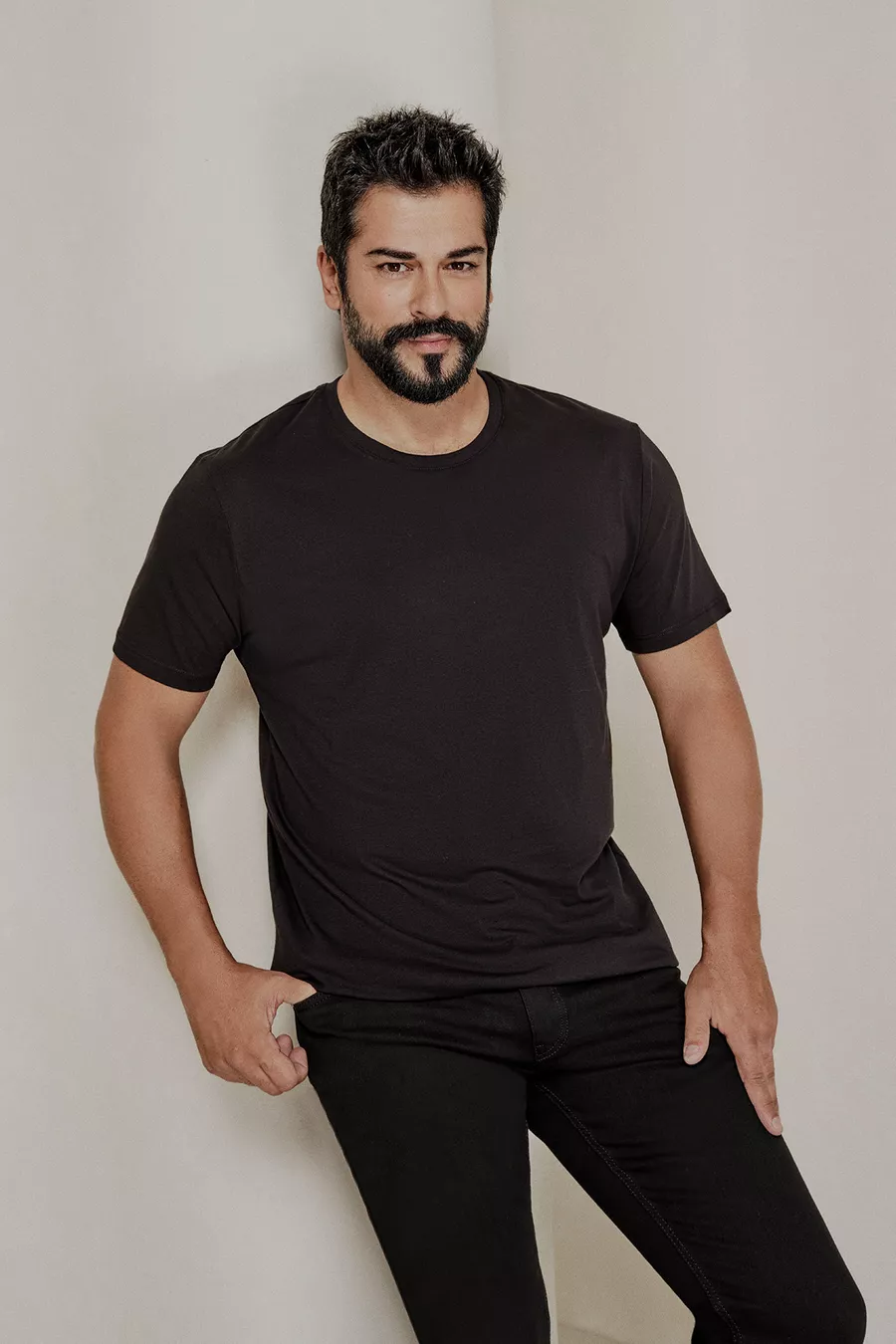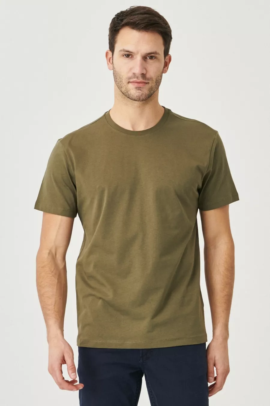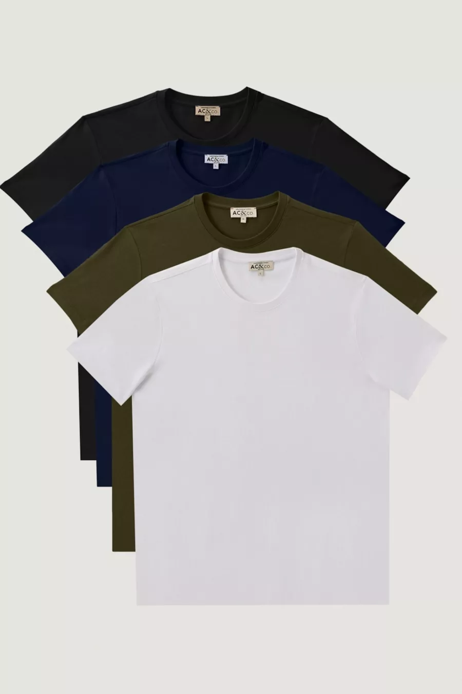 Pacchetto da 4 T-shirt basic da uomo, girocollo, taglio slim, aderente, colore bianco-nero-blu scuro-verde kaki, % cotone