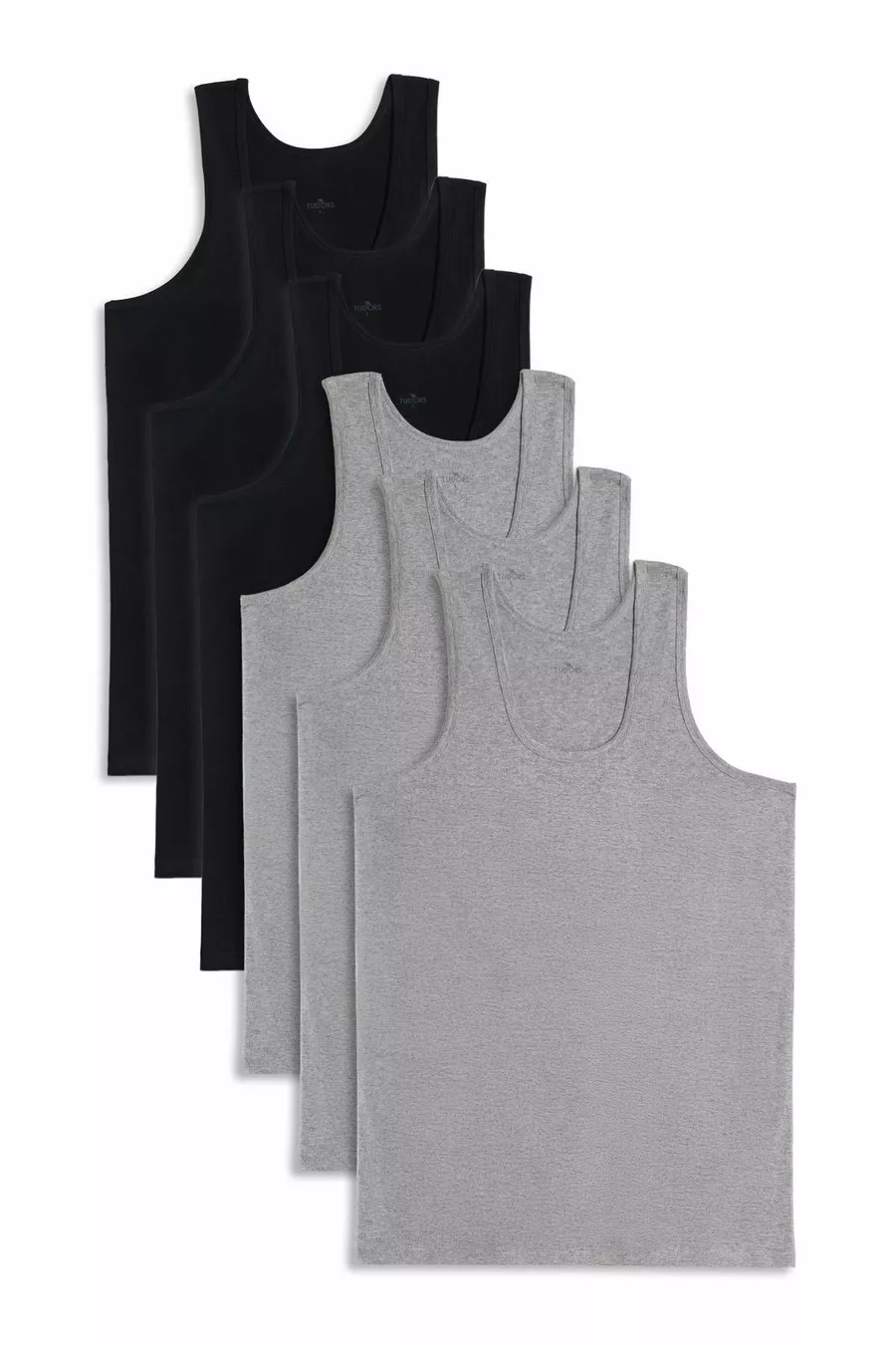 Pacco da 6 Canotte da uomo in cotone a manica corta, nero-grigio, taglio normale, vestibilità standard
