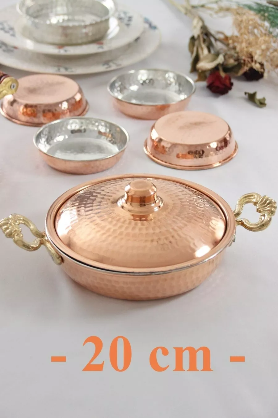 Dimensioni/Formato: 20 cm Numero di pezzi: 2 Caratteristica: Adatto all'uso in forno Tipo di prodotto: Padella per friggere Materiale esterno: Rame Materiale interno: Rame Materiale: Rame