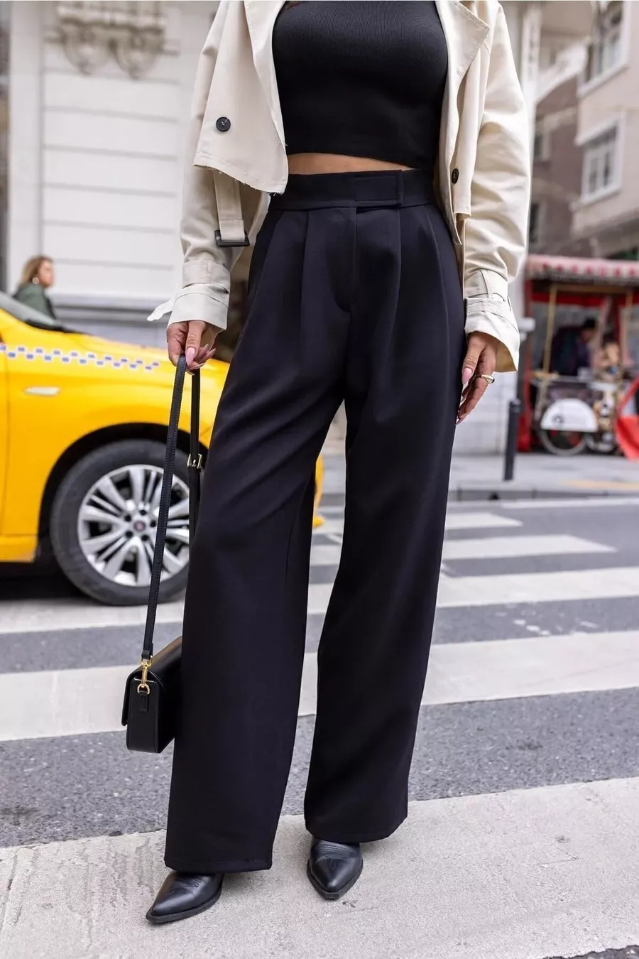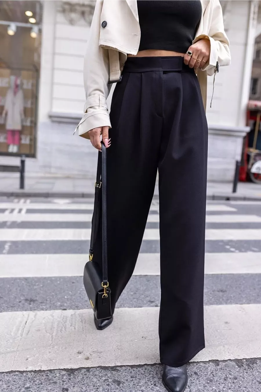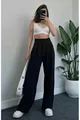 Palazzo Nero con Strappo Vita Alta Vita Regolabile Pantalone a Gamba Larga puqaq