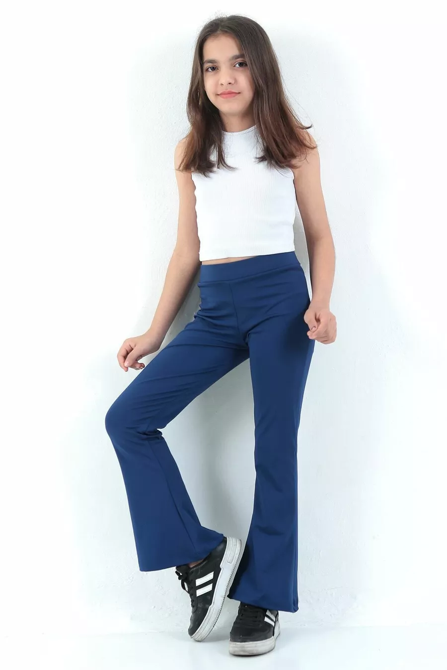 Materiale: Cotone Tipo di tessuto: Tessuto Tipo di gamba: Gamba a zampa Vita: Vita normale Motivo: Tinta unita Colore: Blu scuro Tasche: Senza tasche Dettaglio prodotto: Orlo Collezione: Basic Spessore: Medio Fodera: Non foderato Lunghezza: Regolare Silhouette: Bootcut Occasione: Casual/quotidiano Vestibilità: Flare Caratteristica aggiuntiva: Elastico Tipo di tessuto lavorato: Suprem Persona: Giovane Tecnica di stampa/ricamo: Non stampato Cintura/banda: Senza cintura Dettaglio sostenibilità: No Composizione materiale: 95% Cotone, 5% Elastan Istruzioni di lavaggio: Tipo 1 Stagione: Tutte le stagioni Made in: TR Condizione confezione: Senza scatola
