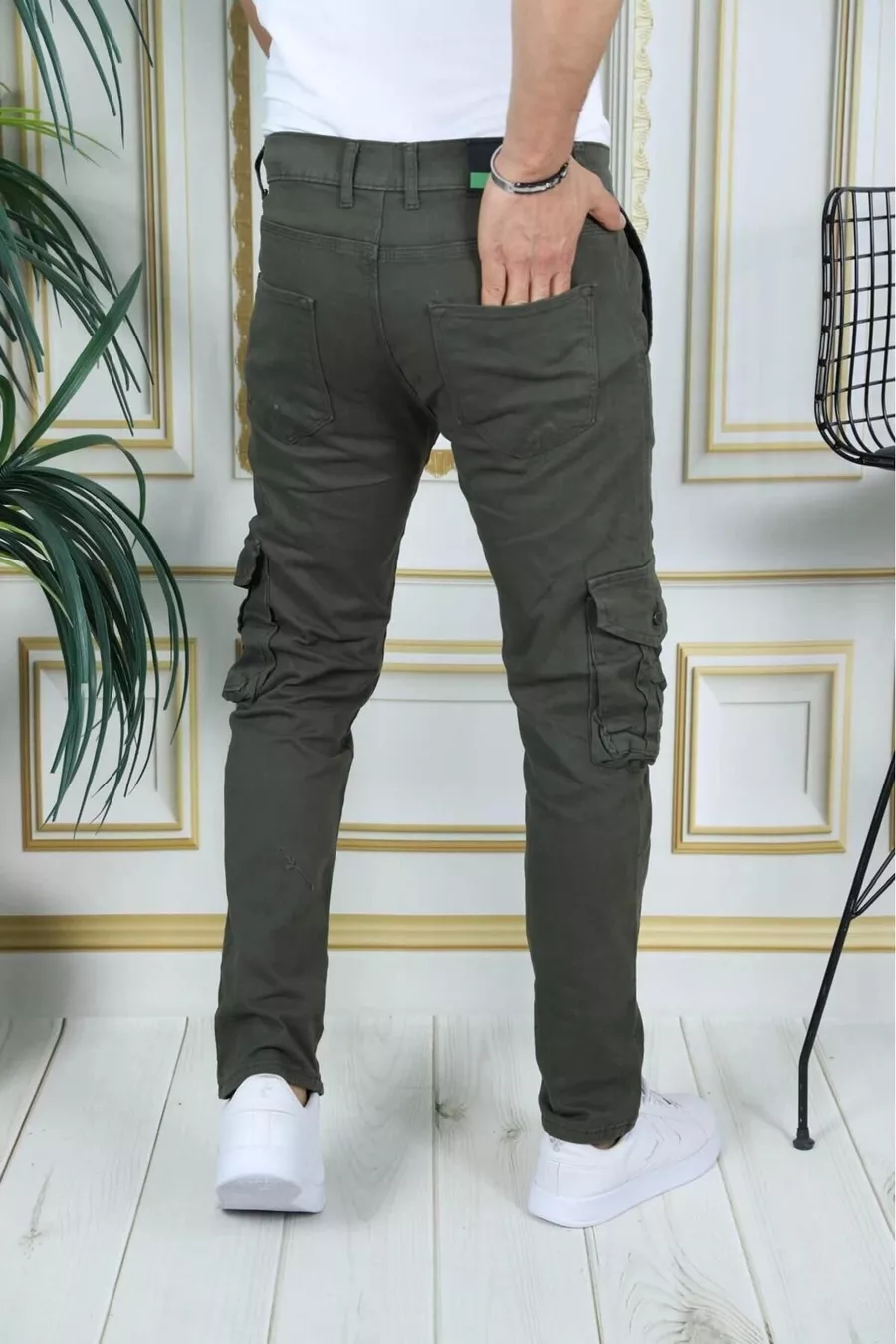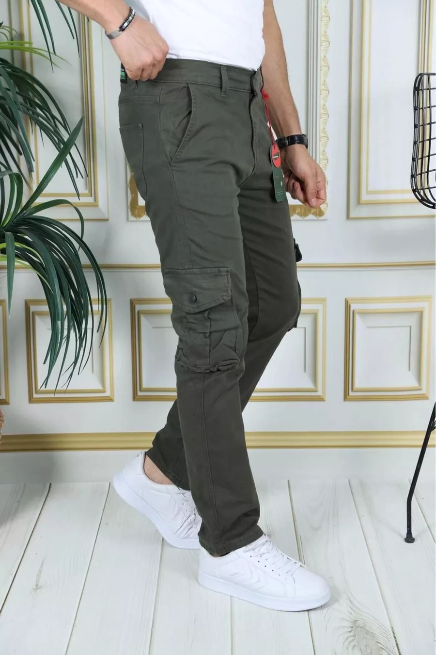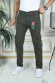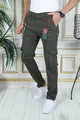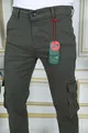 Pantaloni Cargo Uomo Verde Militare in Gabardine/Canvas Elasticizzato con Tasche a soffietto Pantaloni Eleganti da Comando