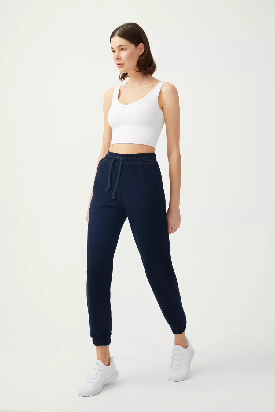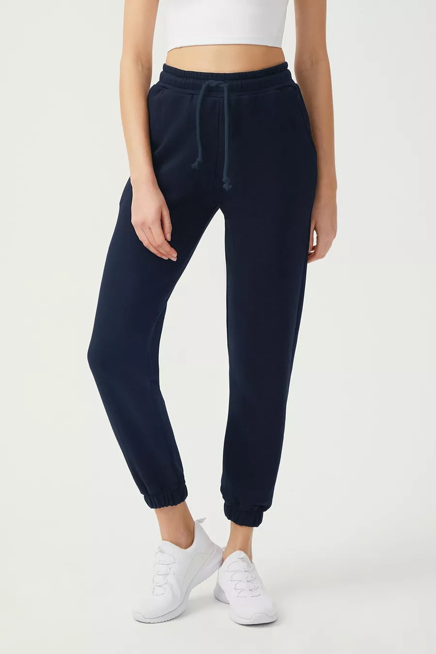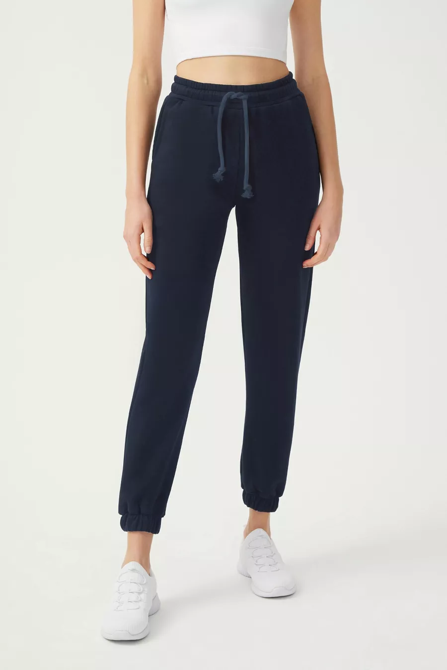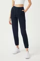 Pantaloni da jogging da donna blu scuro con elastico in vita e coulisse