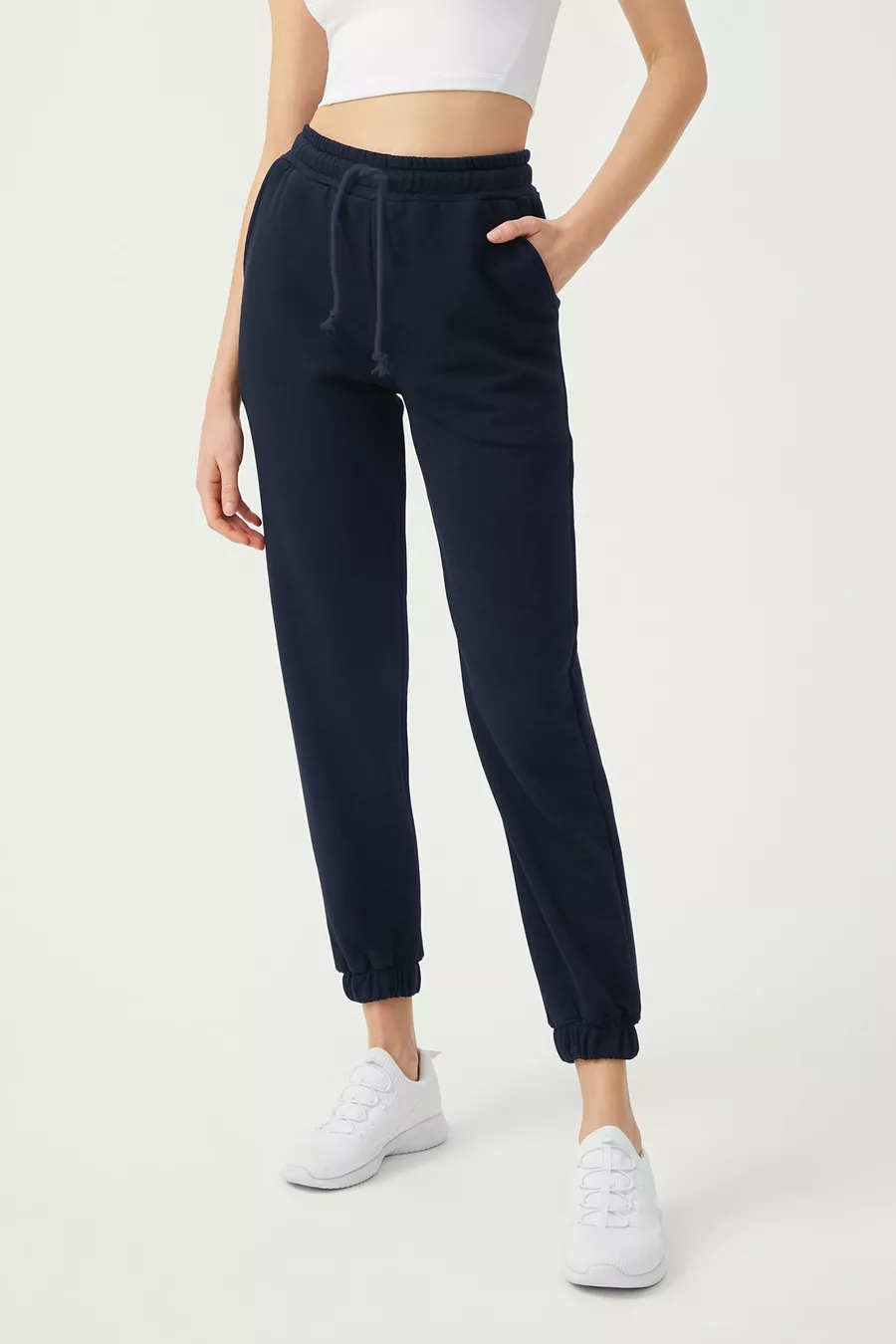 Caratteristiche del tessuto: Non trattiene pelucchi Taglio: Regular Tipo di fondo: Fondo stretto Lunghezza del fondo: Lunga Materiale: Cotone Poliestere Colore: Blu scuro Vita: Vita normale Tasche: Tasche doppie Motivo: Tinta unita Dettaglio prodotto: Con tasche Tipo di prodotto: Tinta unita Collezione: Sportswear Contenuto del pacco: Singolo Altezza: Standard Ambiente: Sportswear Silhouette: Jogger Tipo di tessuto: Tessuto a trama Caratteristica aggiuntiva: Vita elastica Tipo di tessitura: 2 Fili Dettaglio sostenibilità: No Composizione materiale: 80% Cotone, 20% Poliestere Istruzioni di lavaggio: Tipo 1 Provenienza: TR