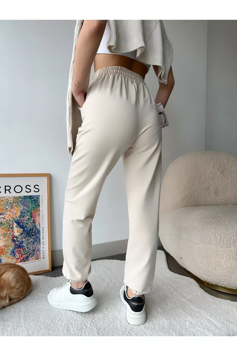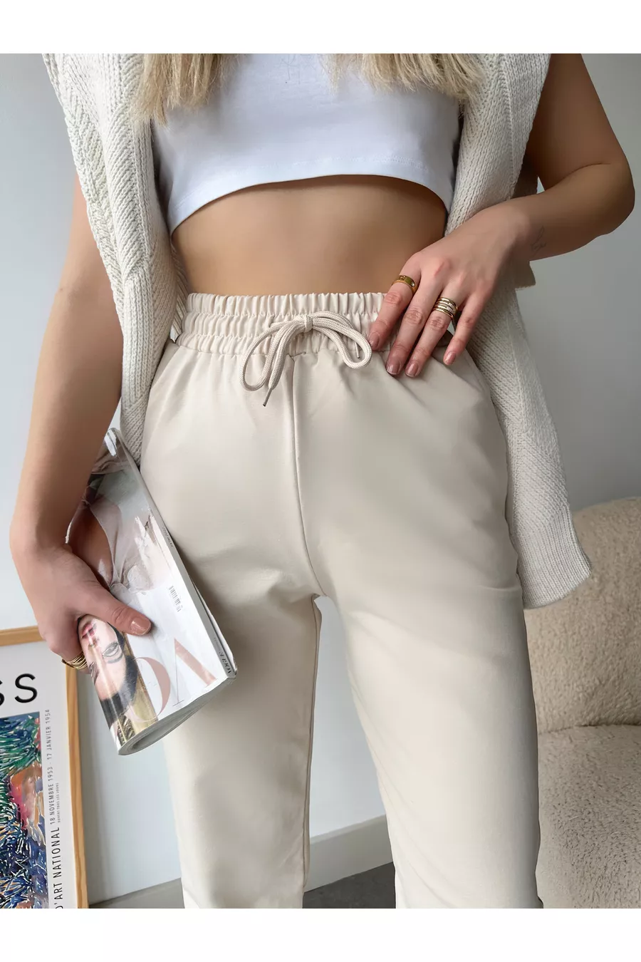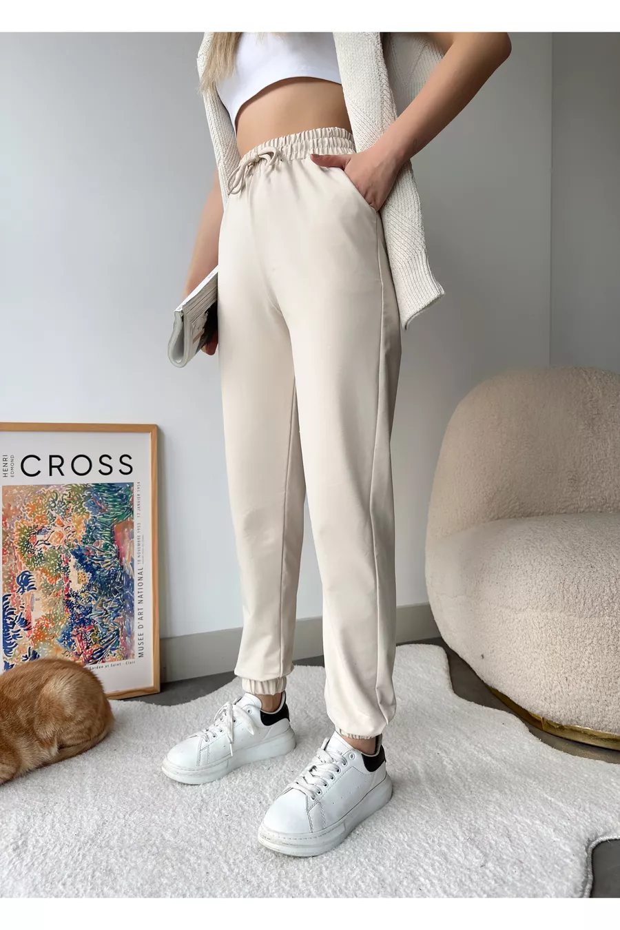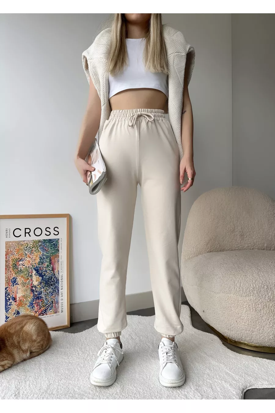 Pantaloni da jogging da donna a vita alta con fondo in spugna elasticizzato