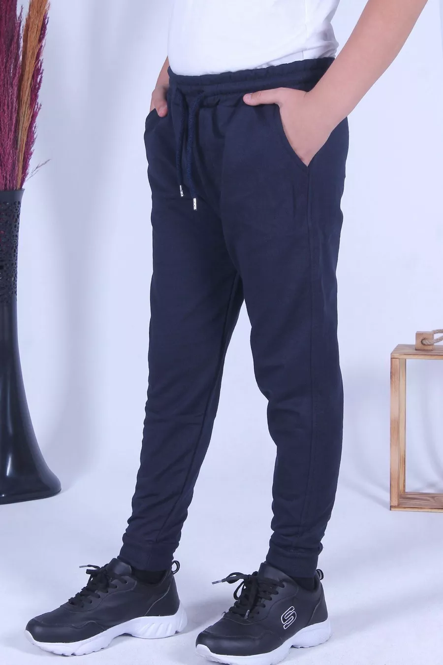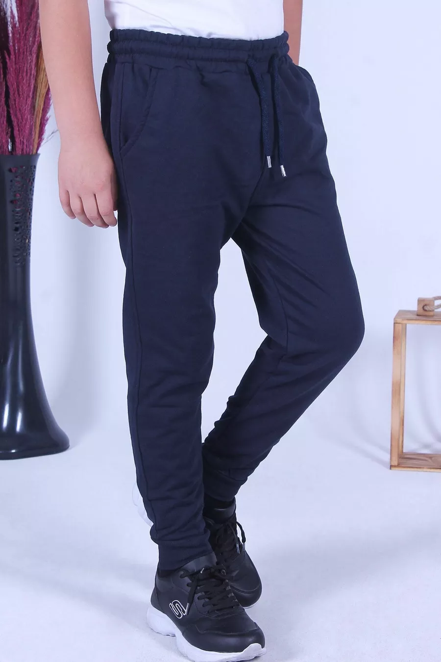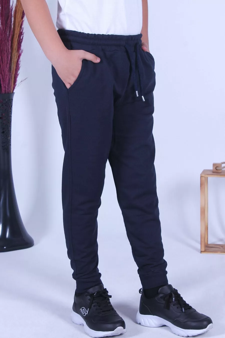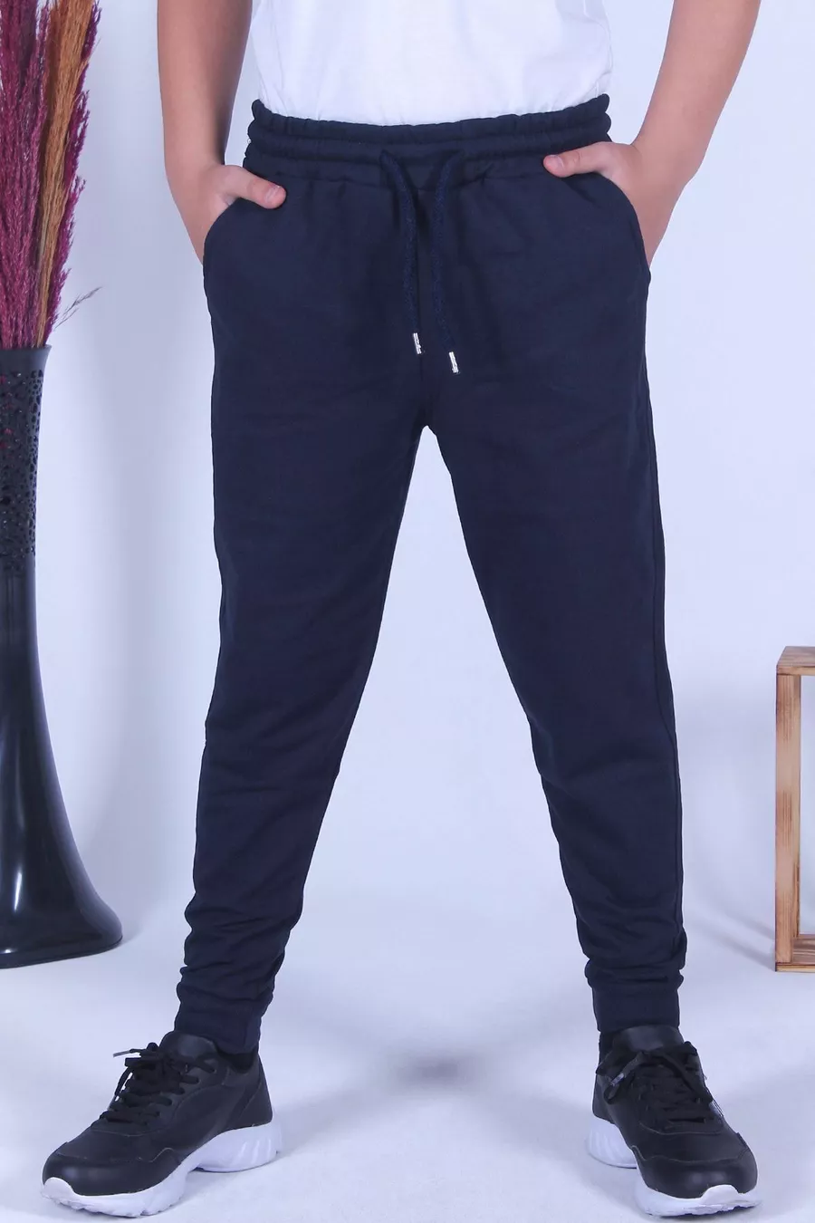 Pantaloni da tuta blu scuro da ragazzo con doppie tasche