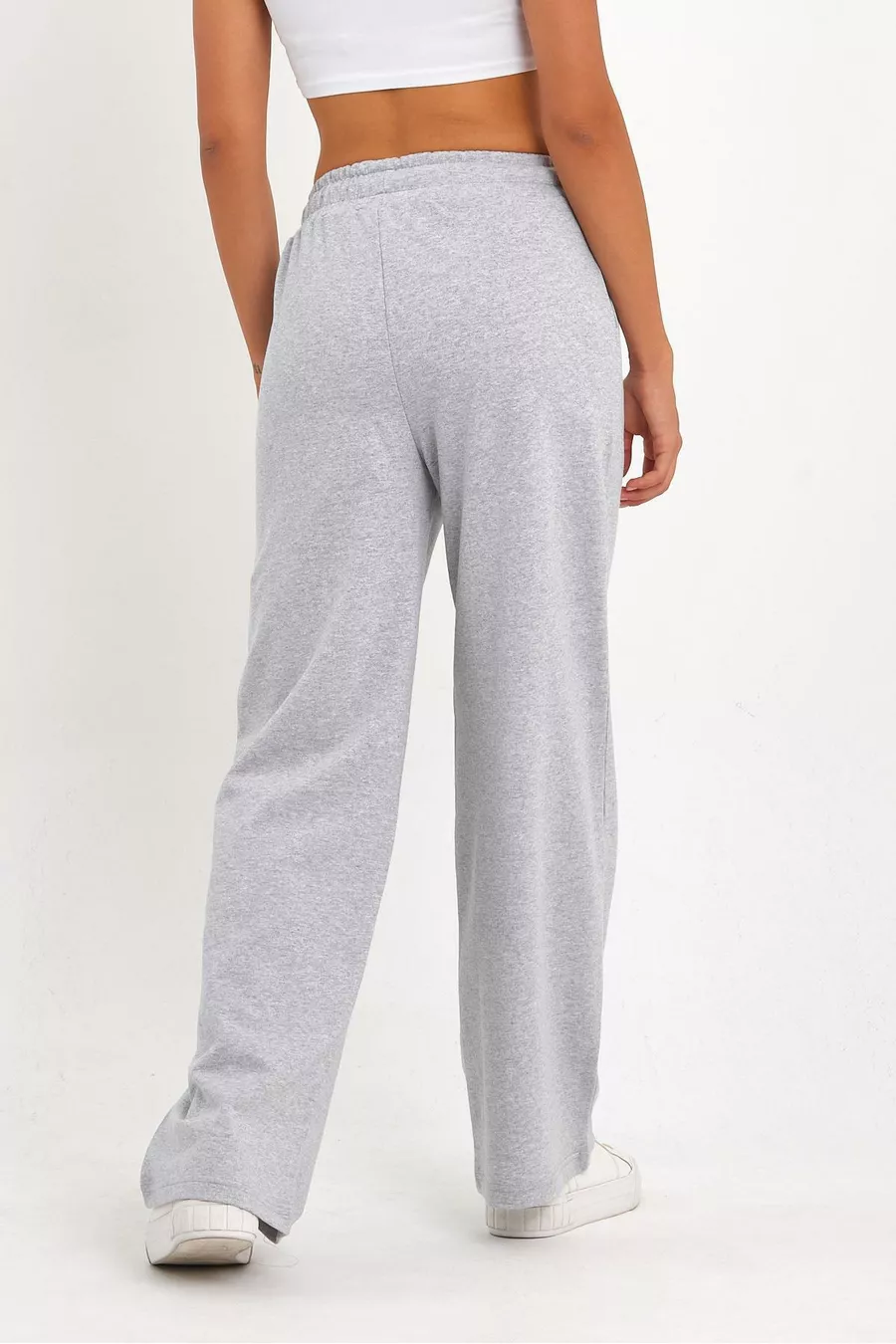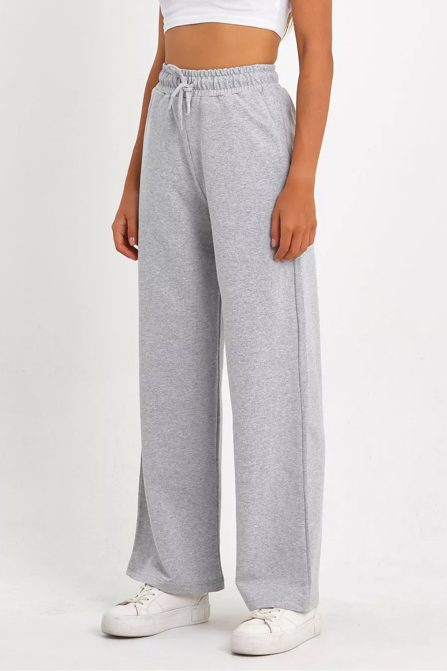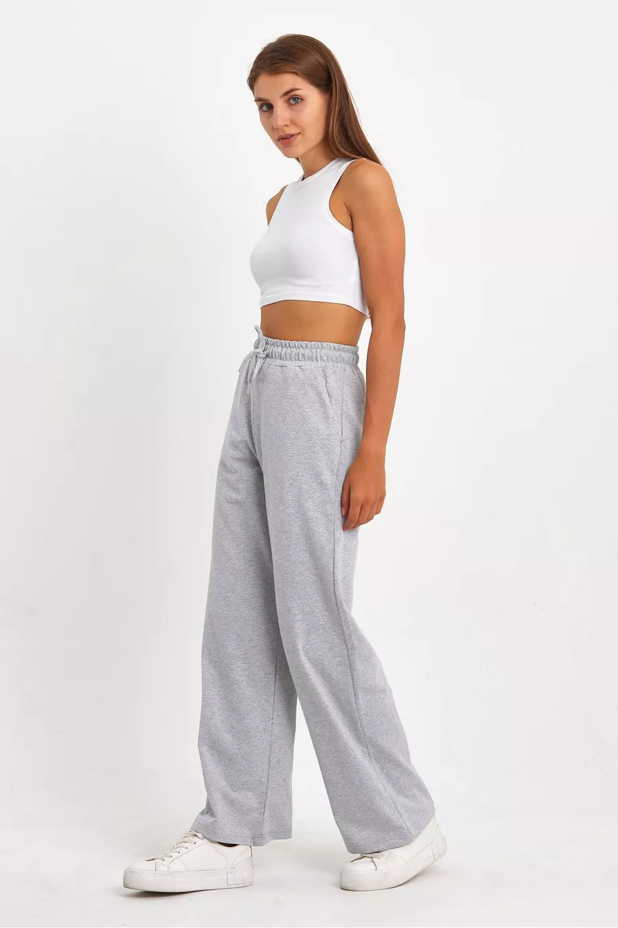 Pantaloni da tuta femminili grigi, comodi e larghi, stagionali, con tasche laterali