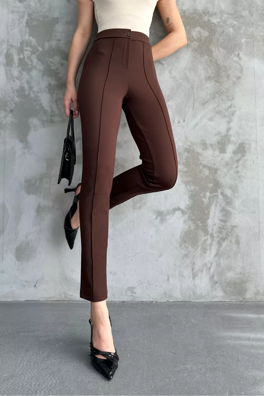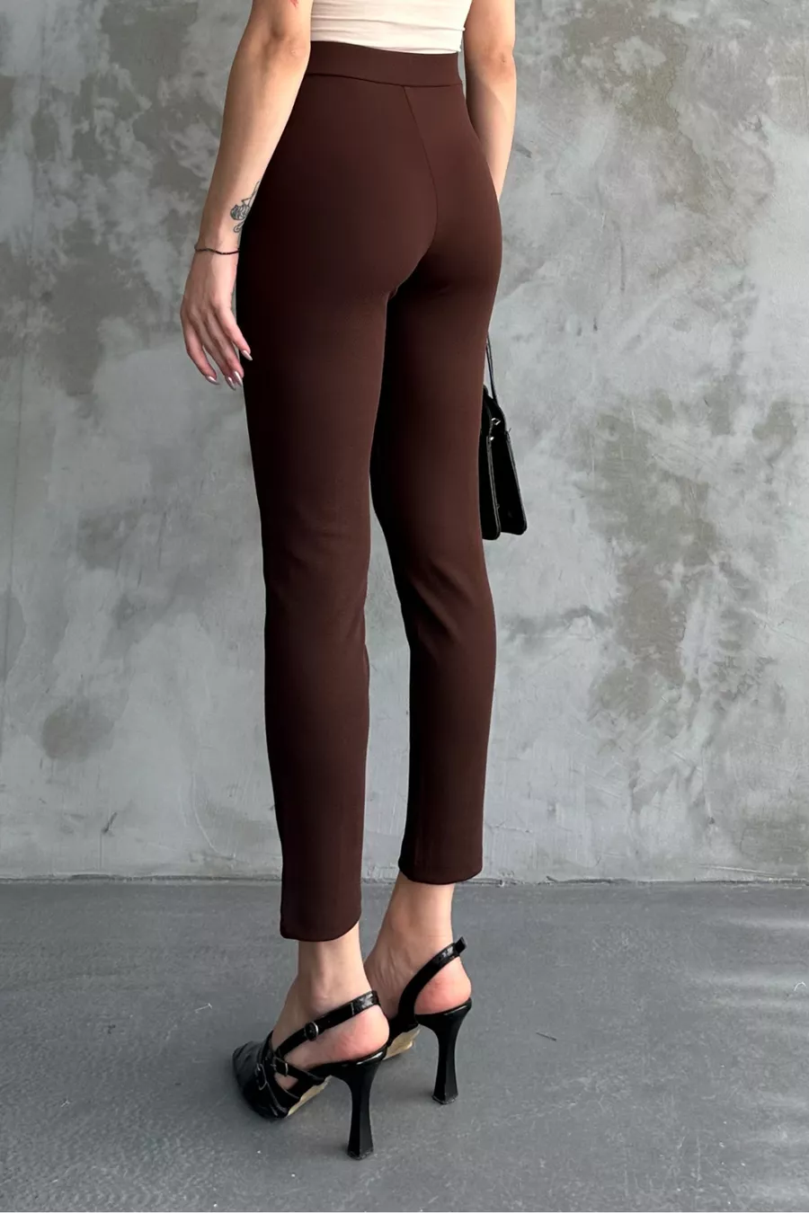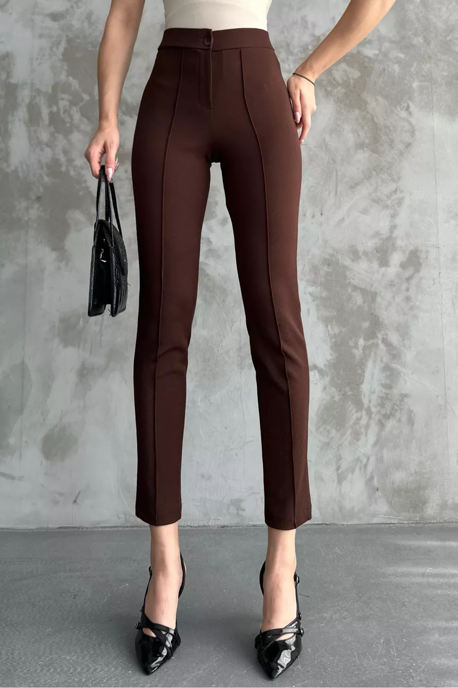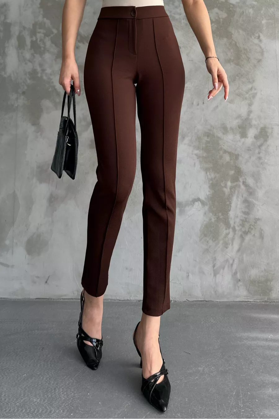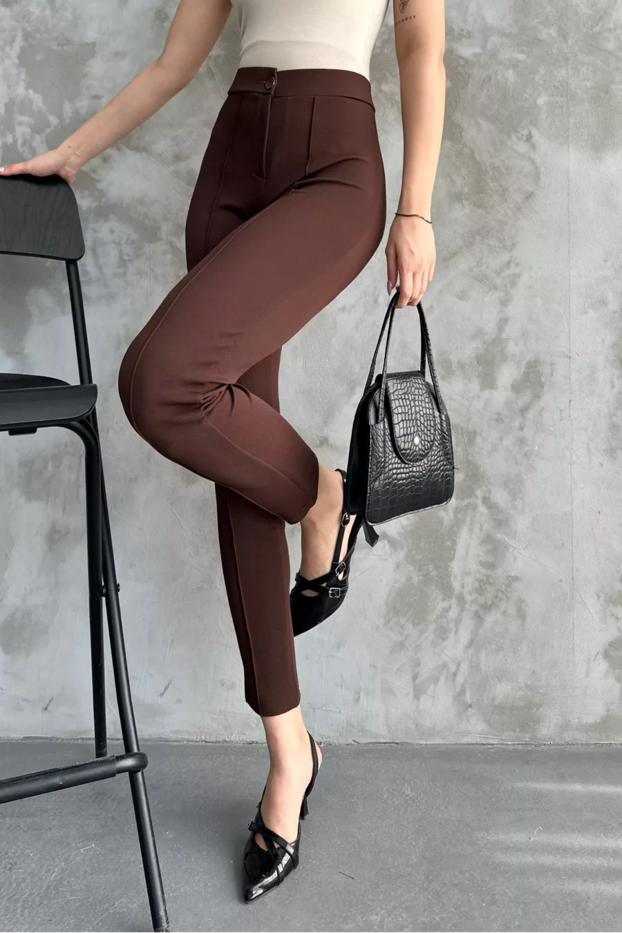 Pantaloni da donna a vita alta, modellanti, a gamba stretta, in tessuto leggero tipo lino