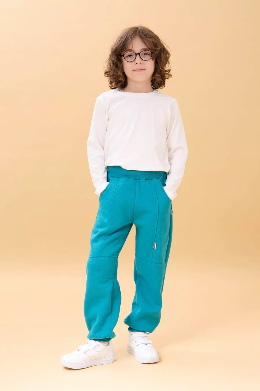 Pantaloni da jogging spessi unisex per bambini con tasche, colore blu petrolio