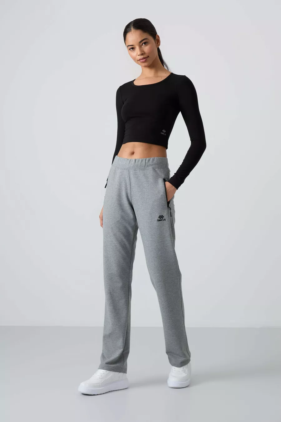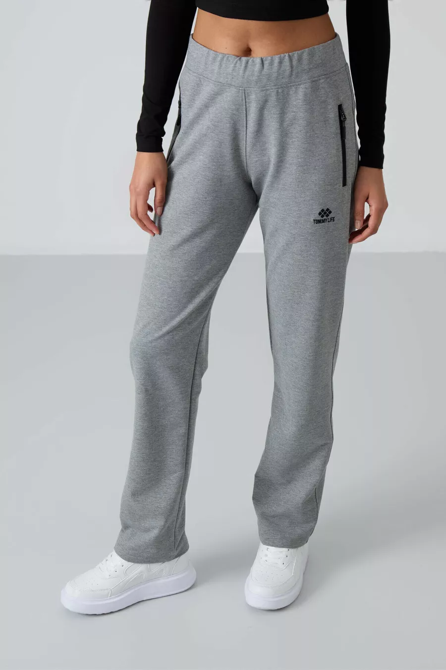 Pantaloni da tuta da donna grigio mélange con cerniera, tasche, vestibilità comoda e gamba classica -