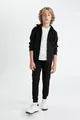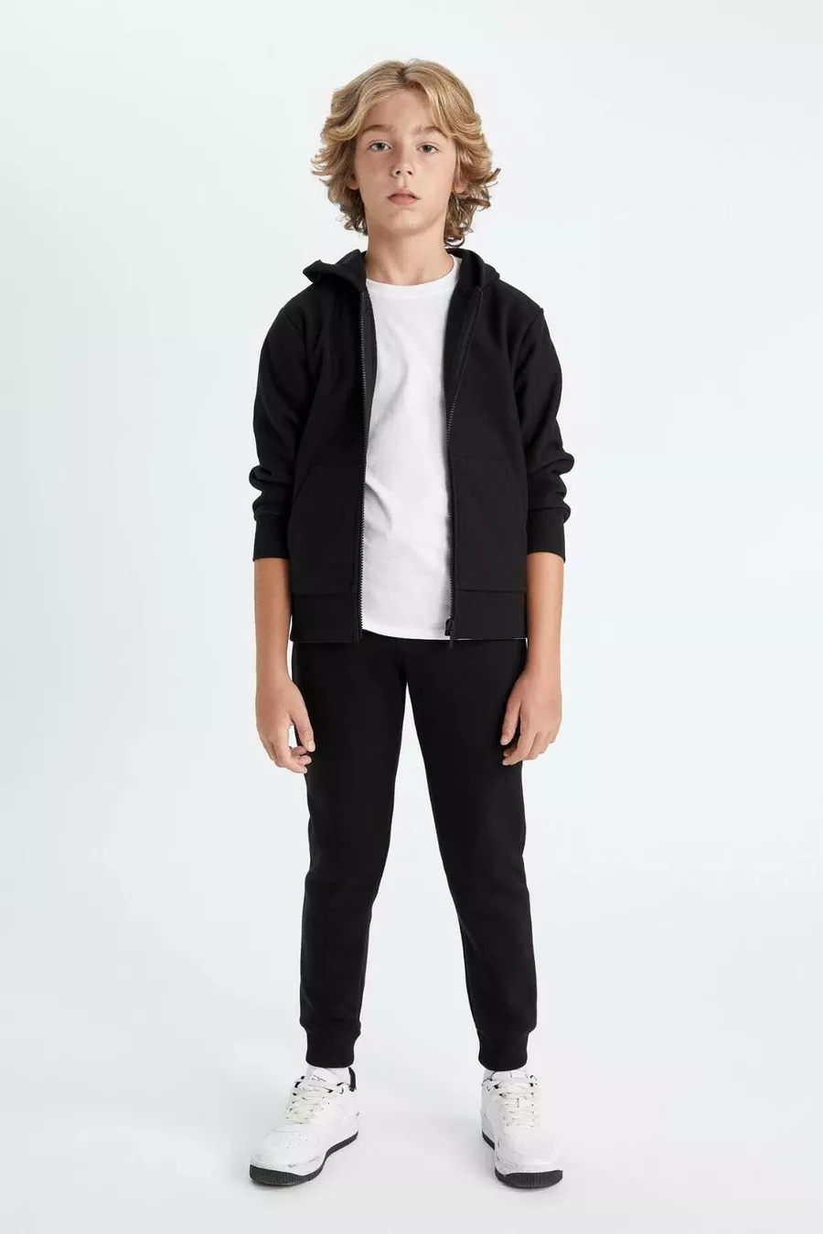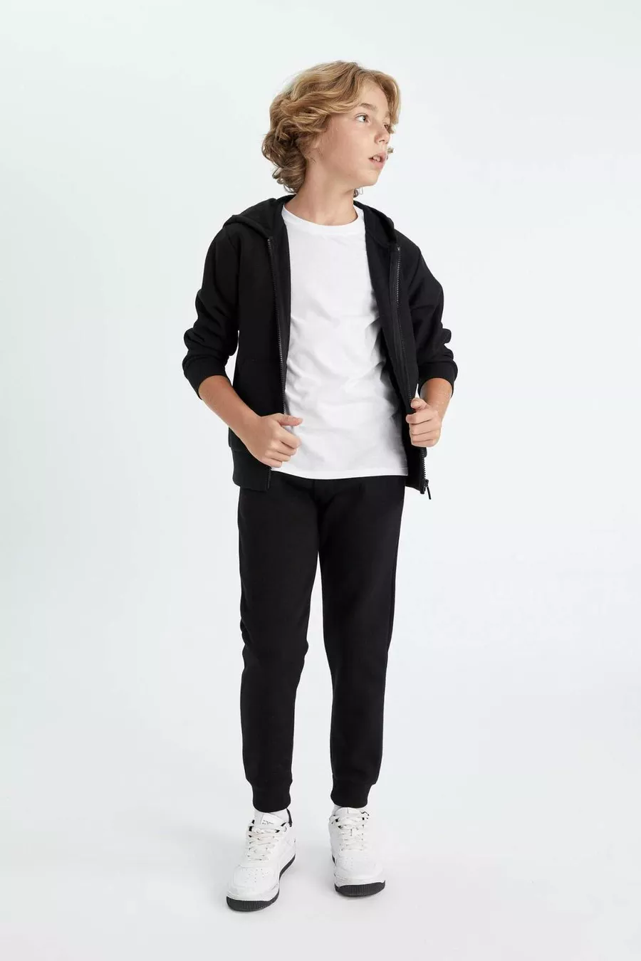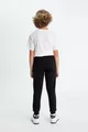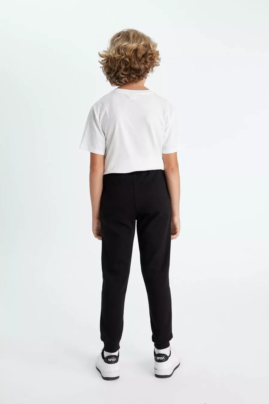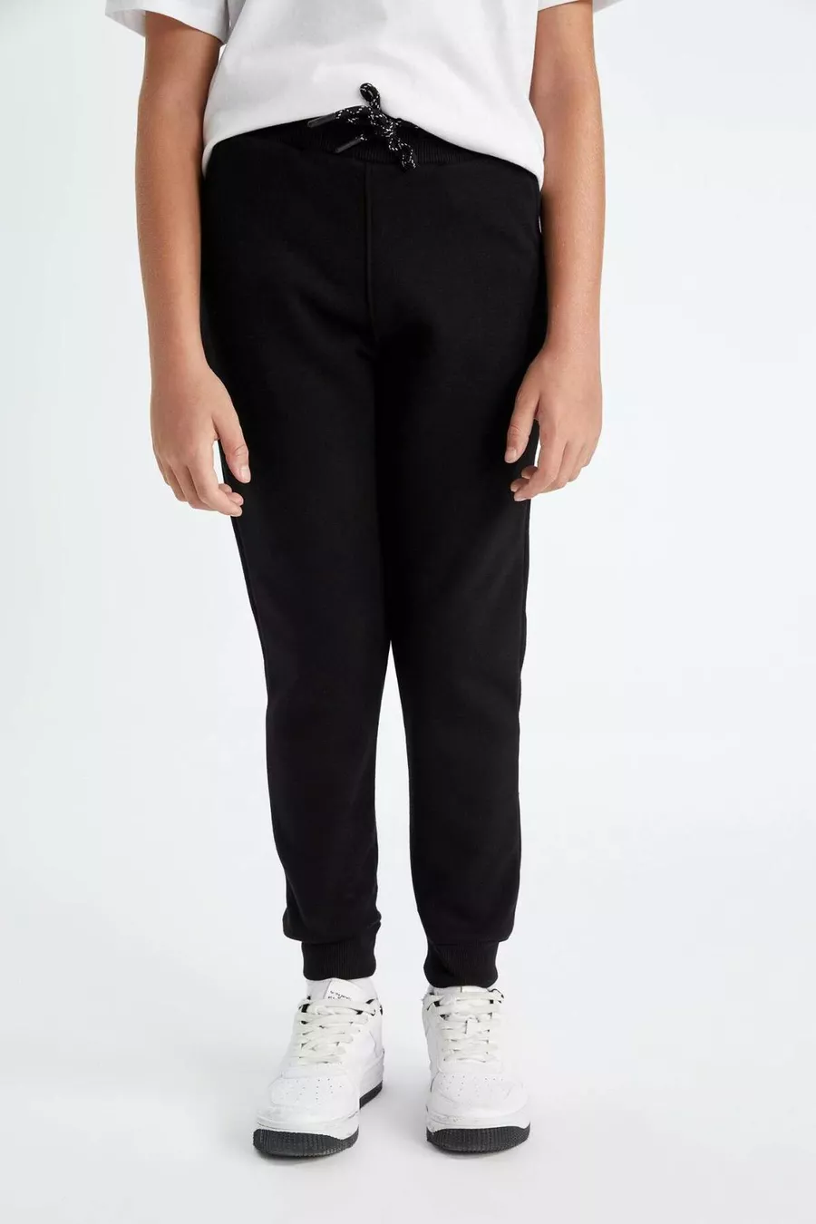 Pantaloni da tuta basic neri per bambino, vita e caviglie elastiche, con tasche, jogger dritti, per scuola AU