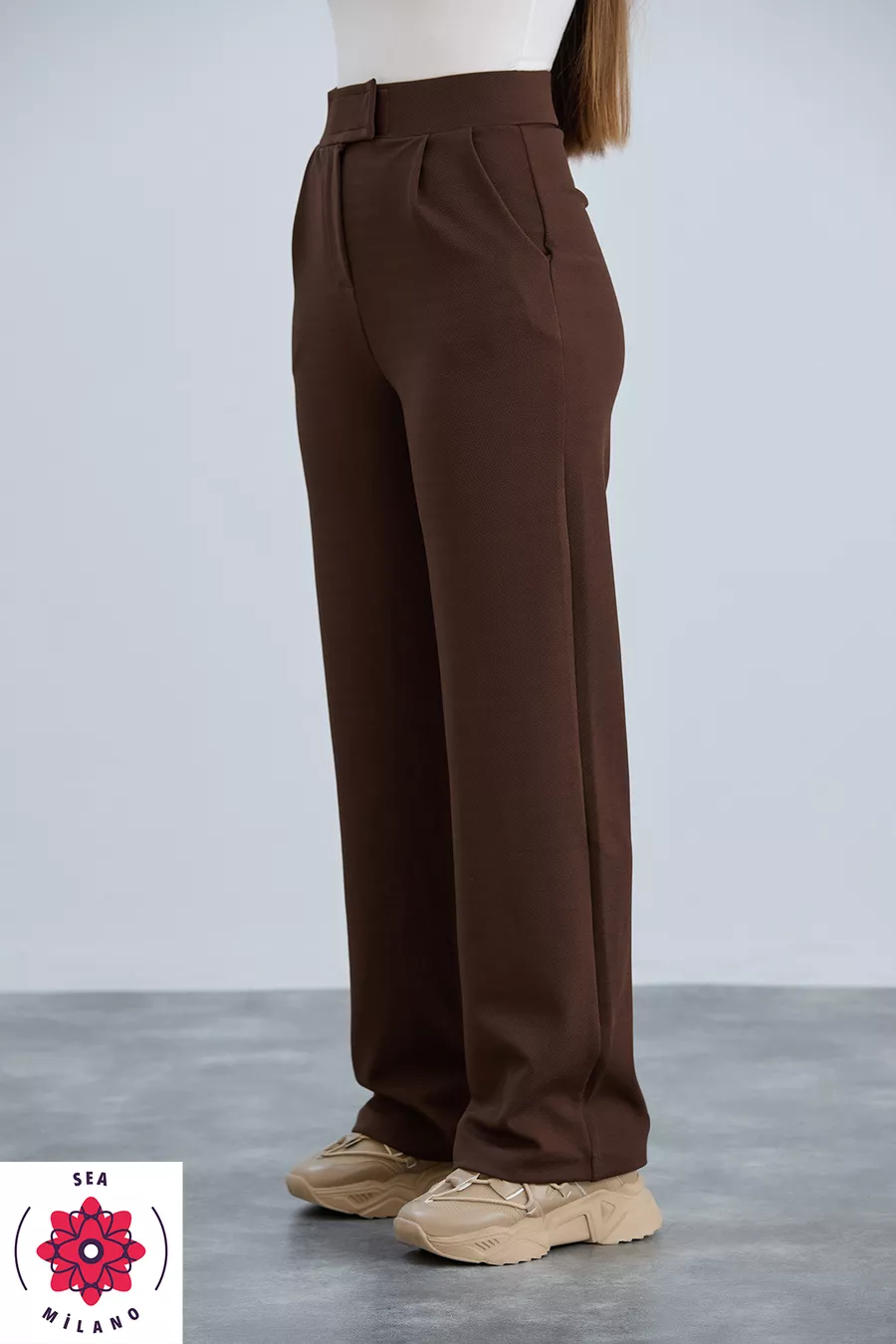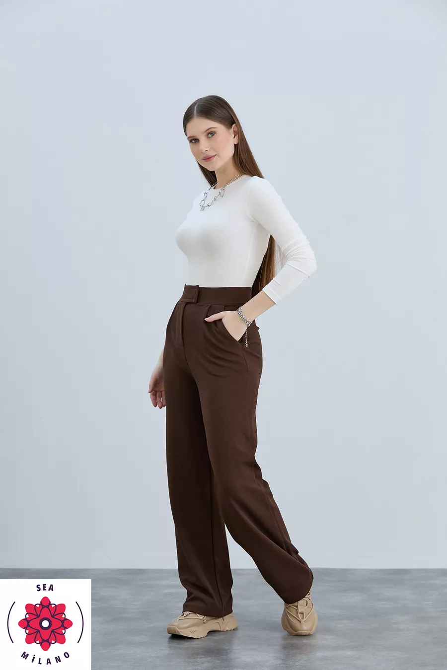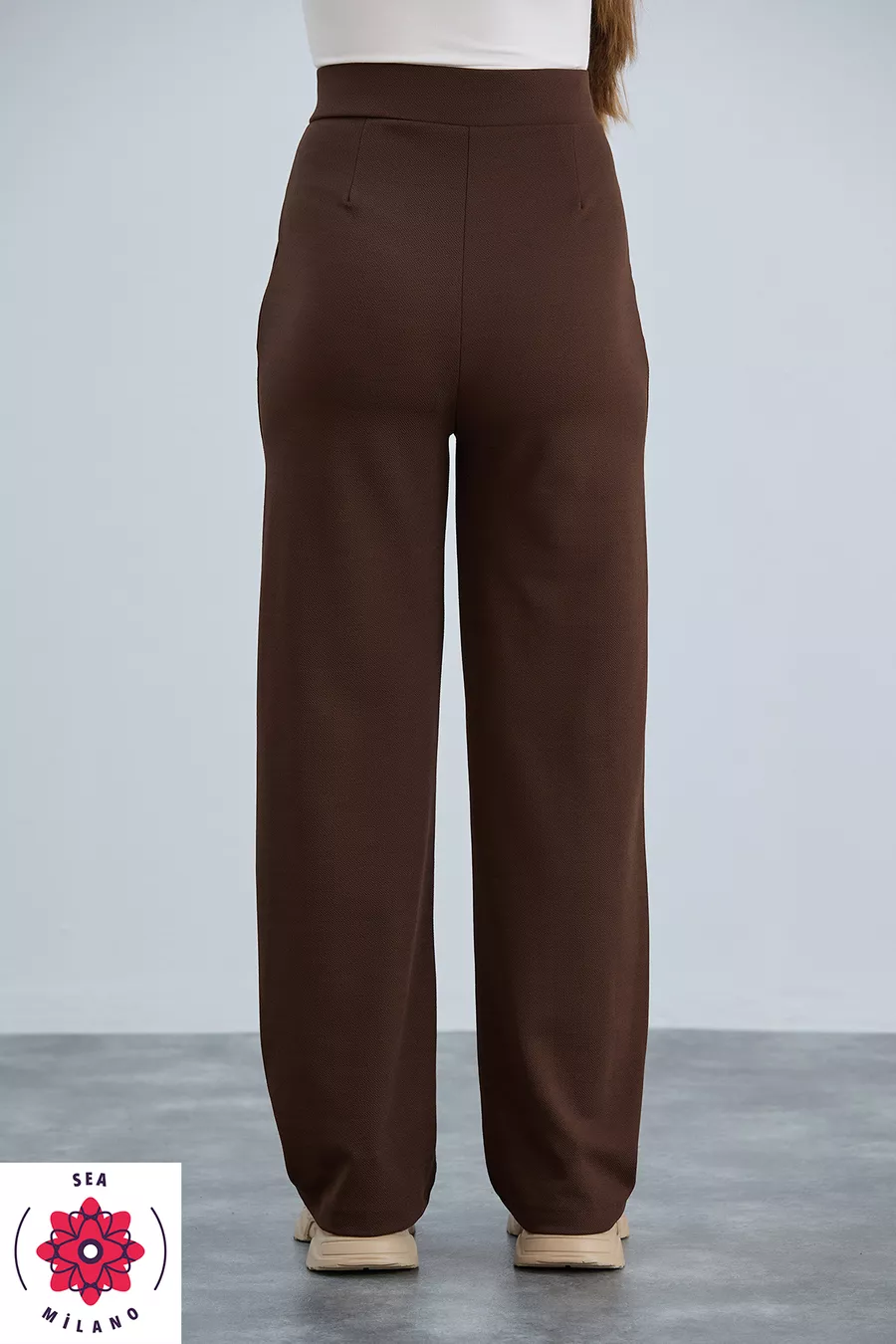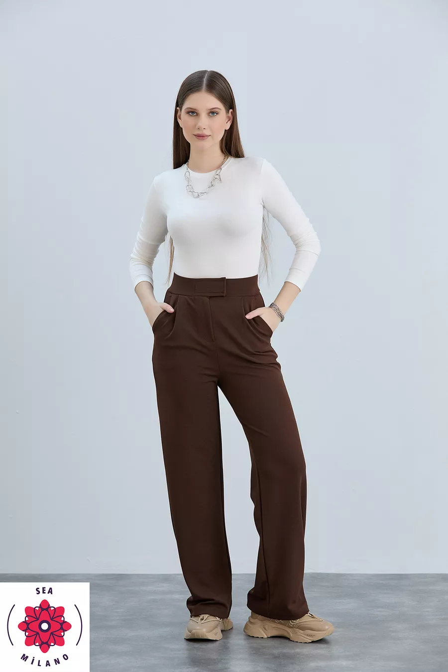 Pantaloni da donna con chiusura a strappo, comodi, palazzo, elasticizzati, vita alta con elastico