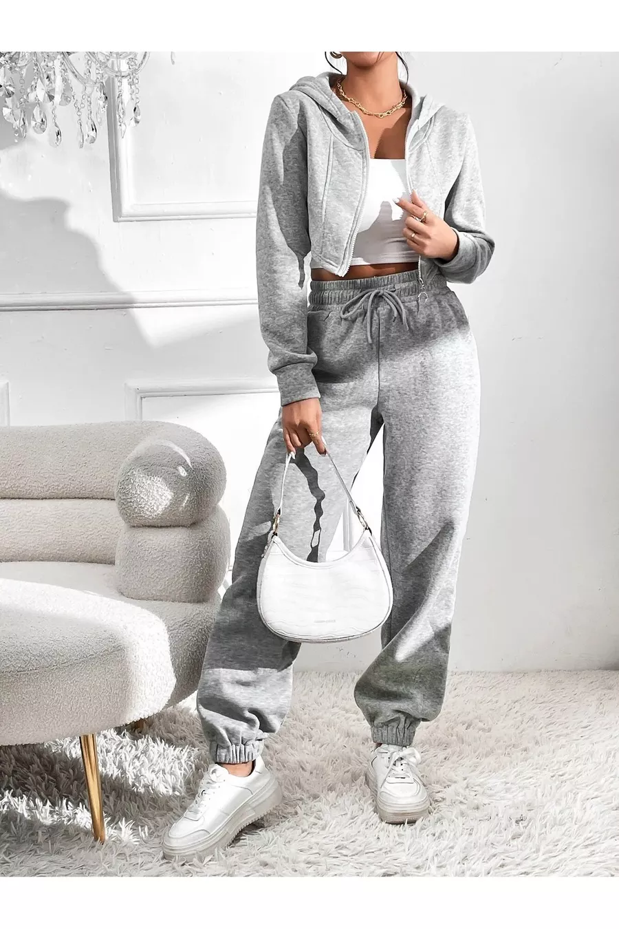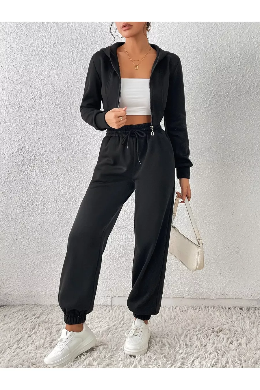 Pantaloni da Jogger Doppio-Neri e Grigi con Polsino Elástico e Vita Alta