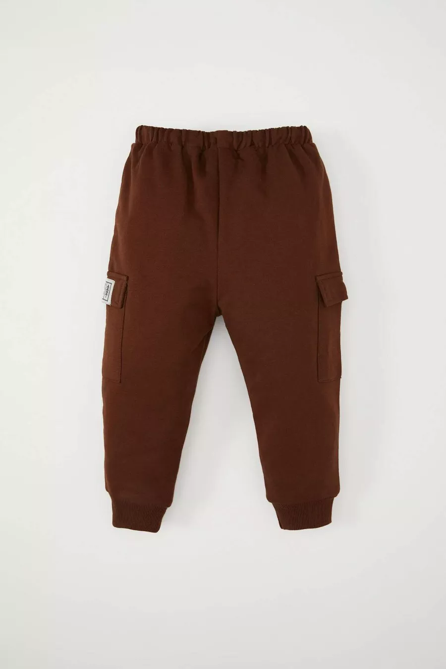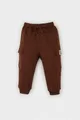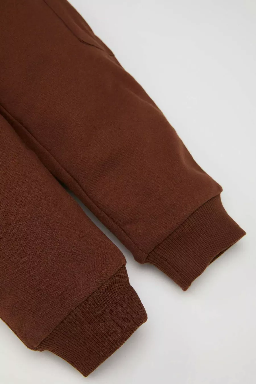 Pantaloni da tuta per neonato maschio marroni con elastico in vita e alle caviglie e stampa con etichetta /