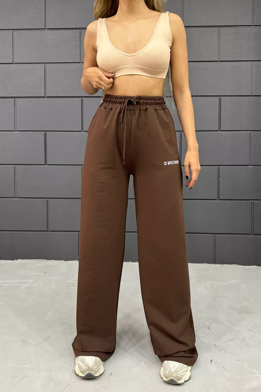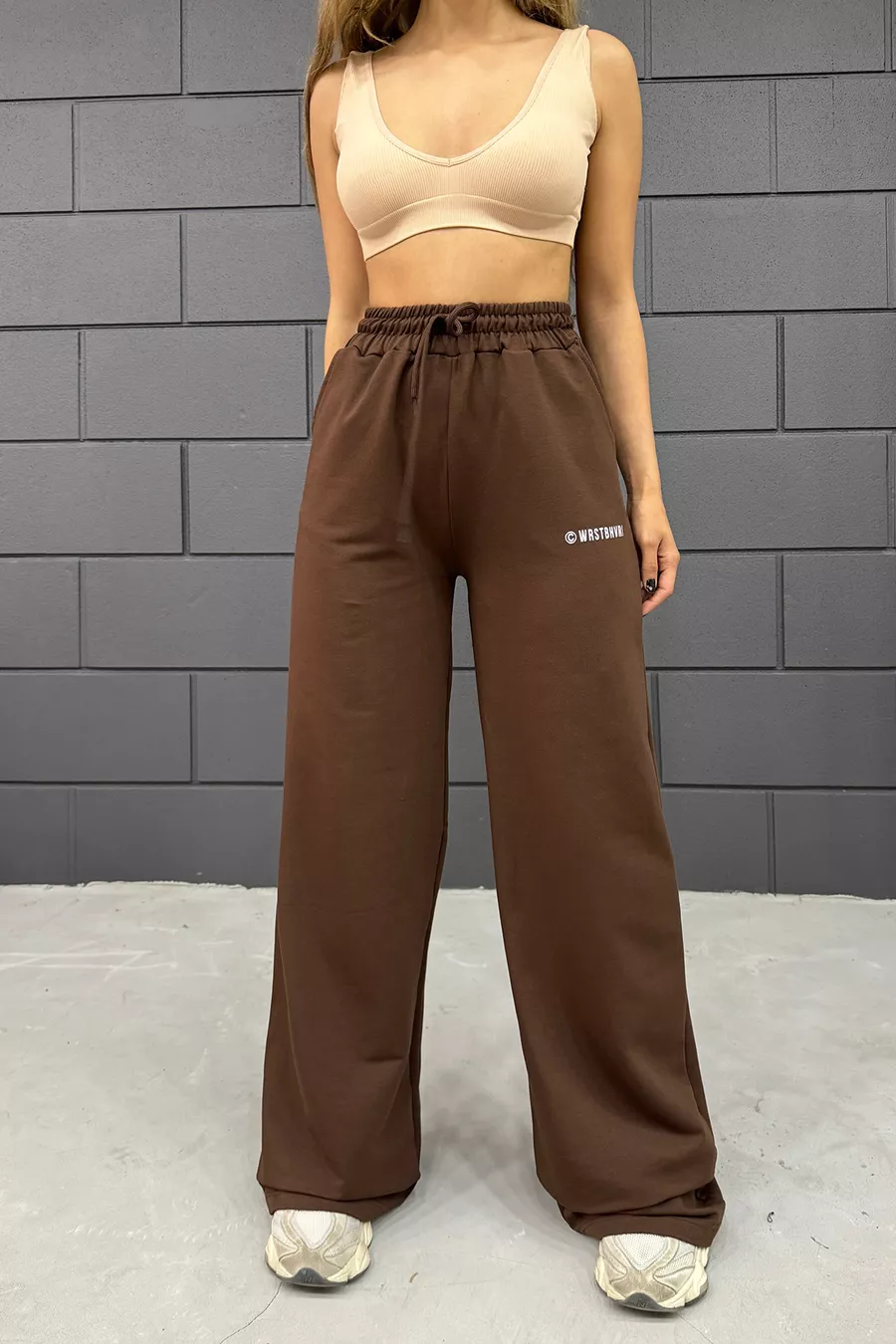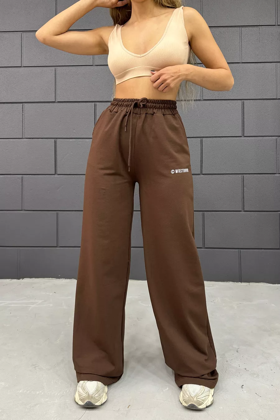 Pantaloni da tuta donna marrone a stampa a gamba larga
