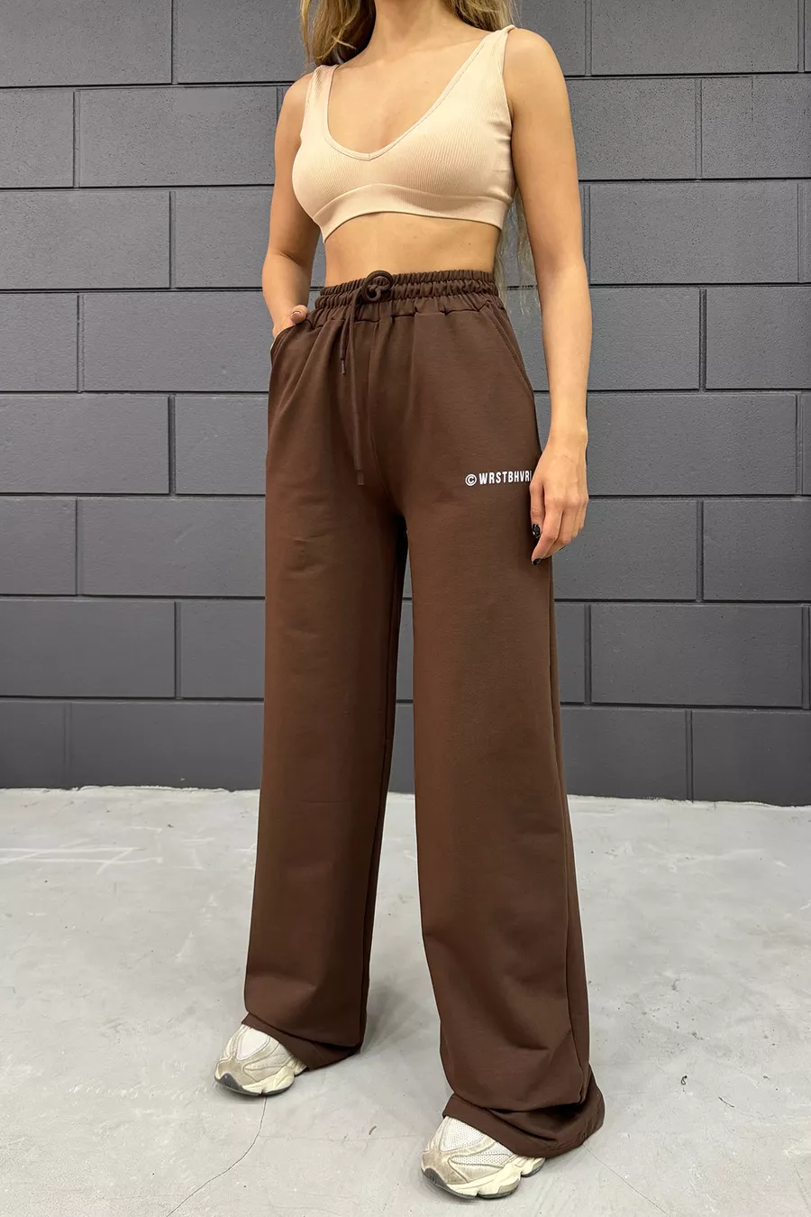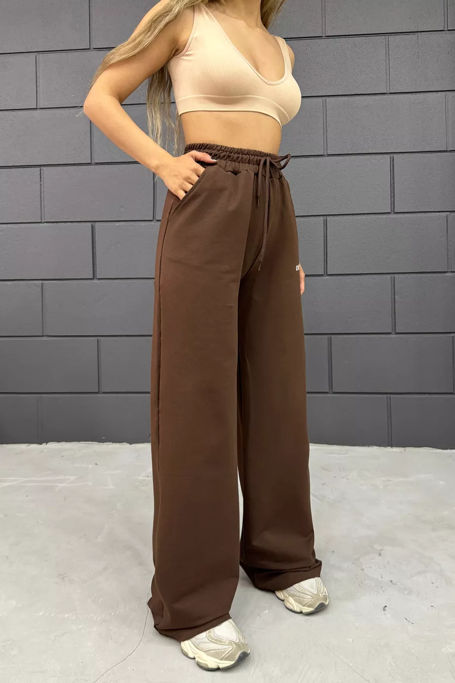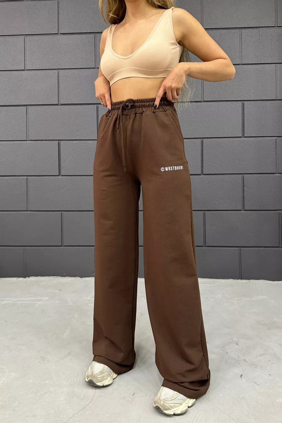 Pantaloni da tuta donna marrone a stampa a gamba larga
