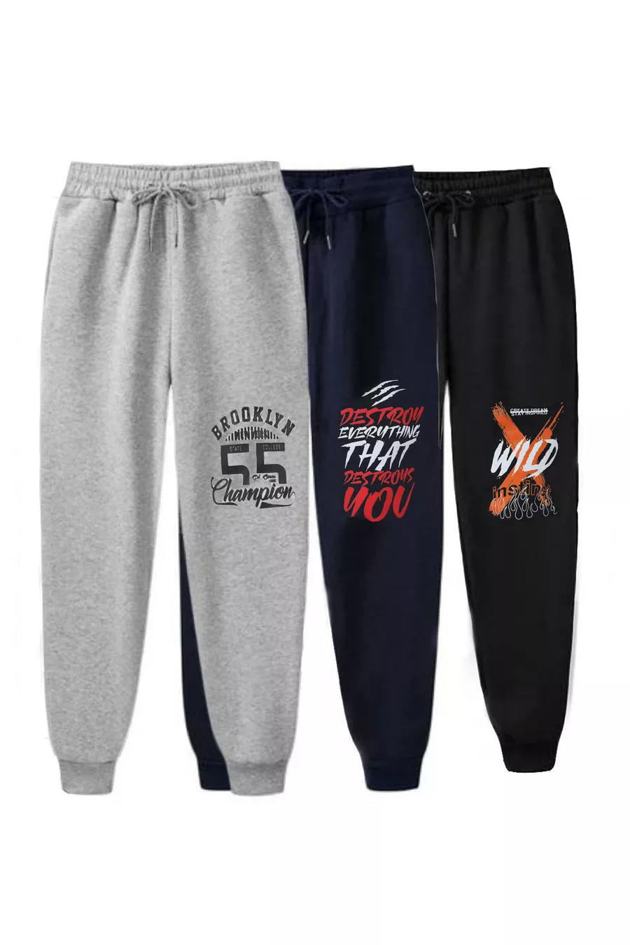 Pantaloni da jogging da bambino maschio con tasche stampate e fondo a costine, non si ritirano, disponibile in 3 pezzi, taglie anni