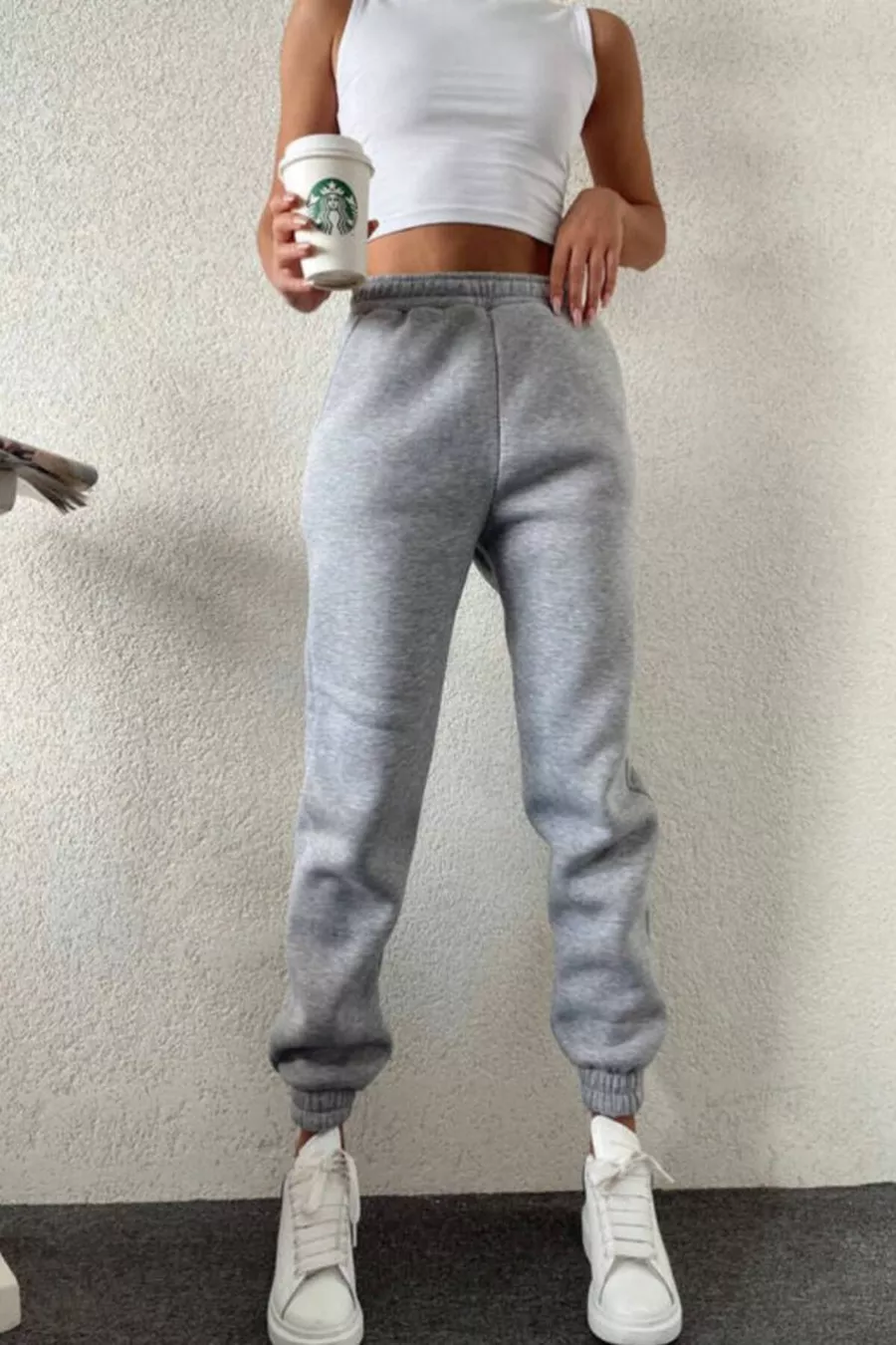 Pantaloni della tuta invernali da donna a vita alta in pile a tre fili