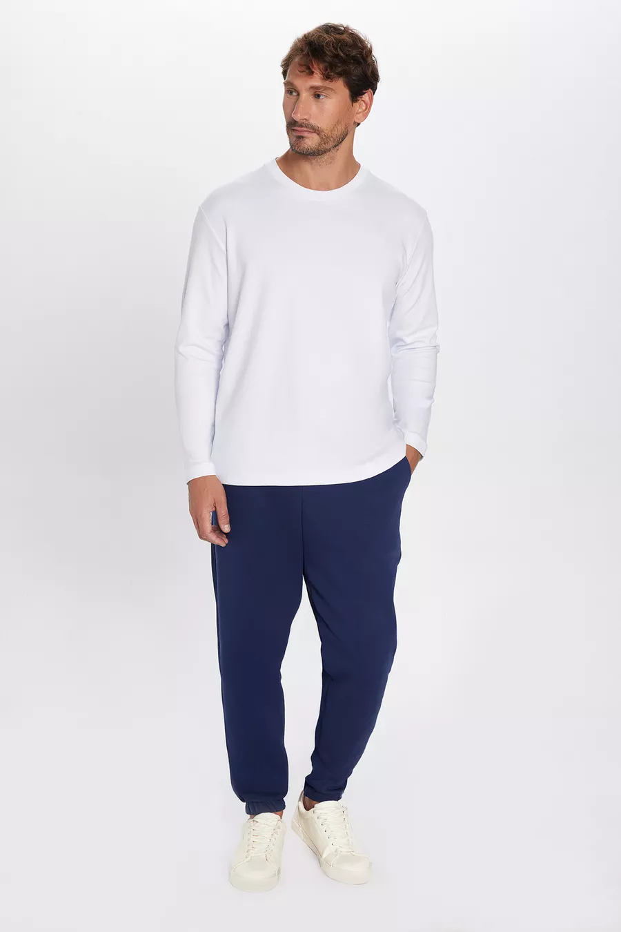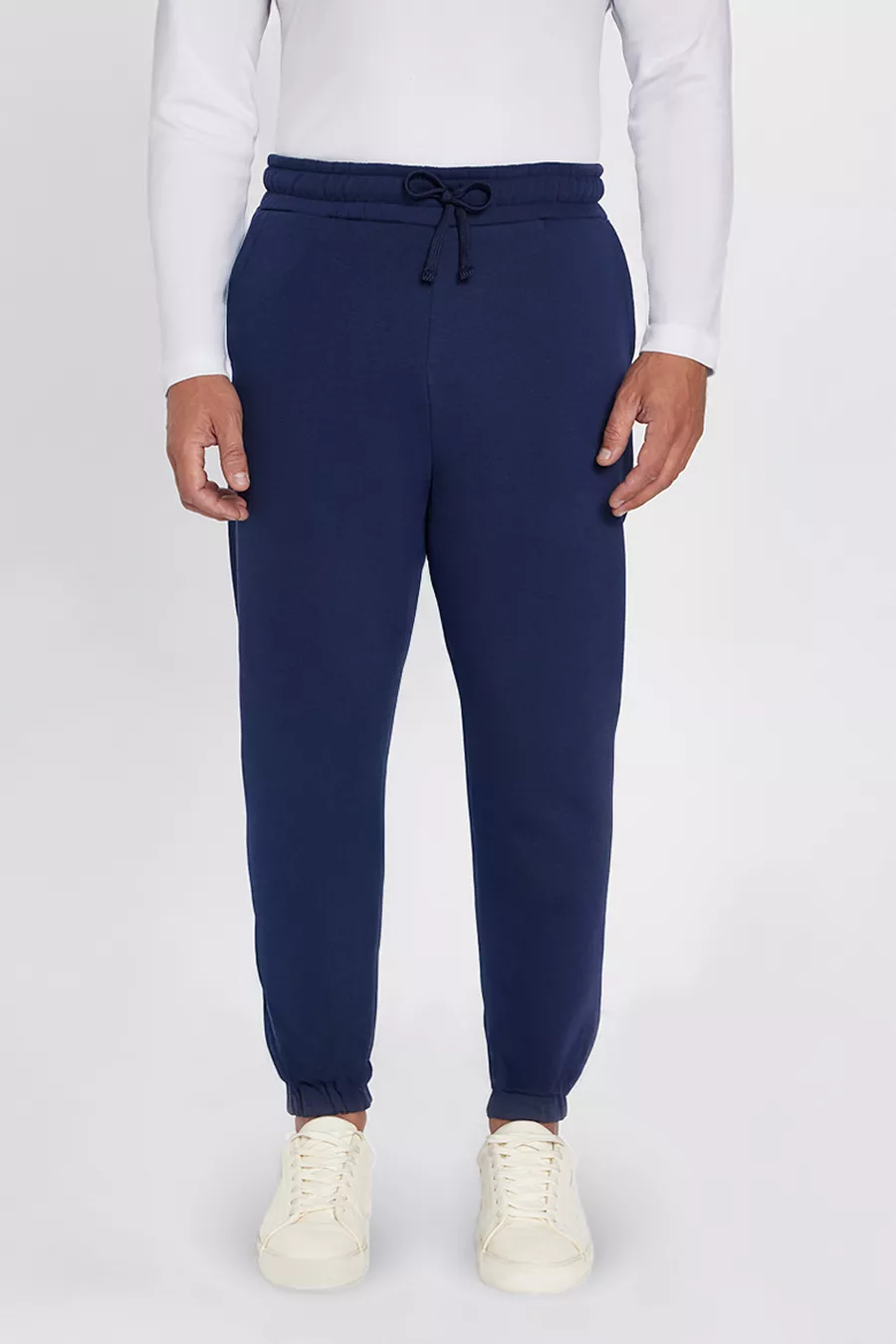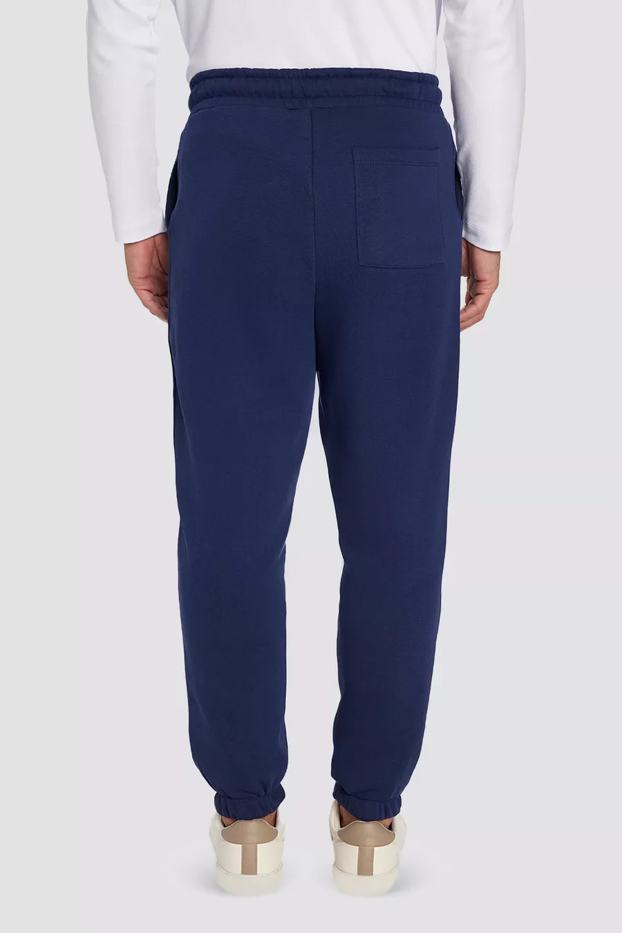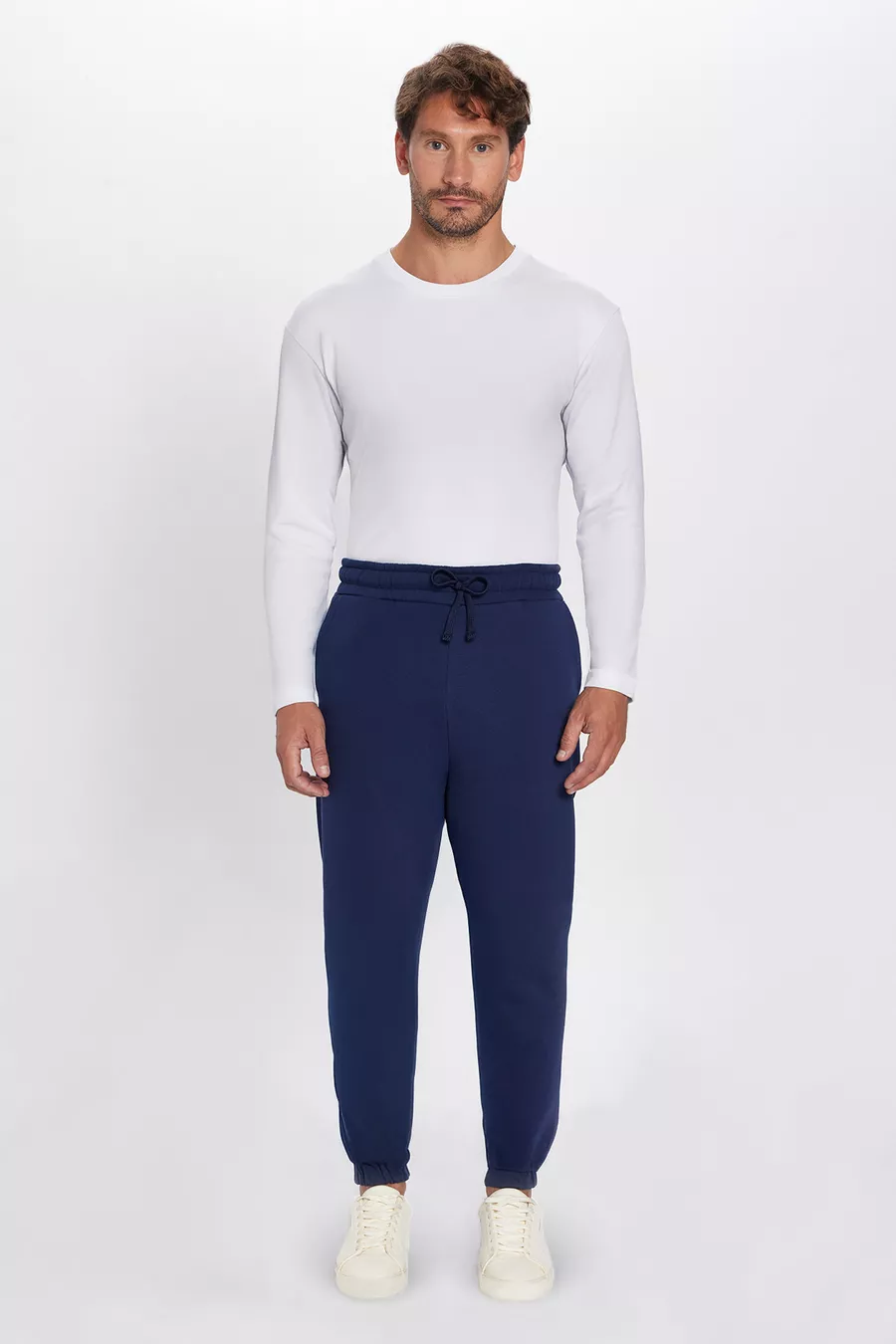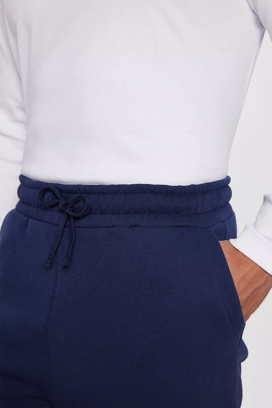 Pantaloni della tuta blu scuro unisex con vestibilità comoda, tasche e vita elastica, modello jogger rifinito con micropile