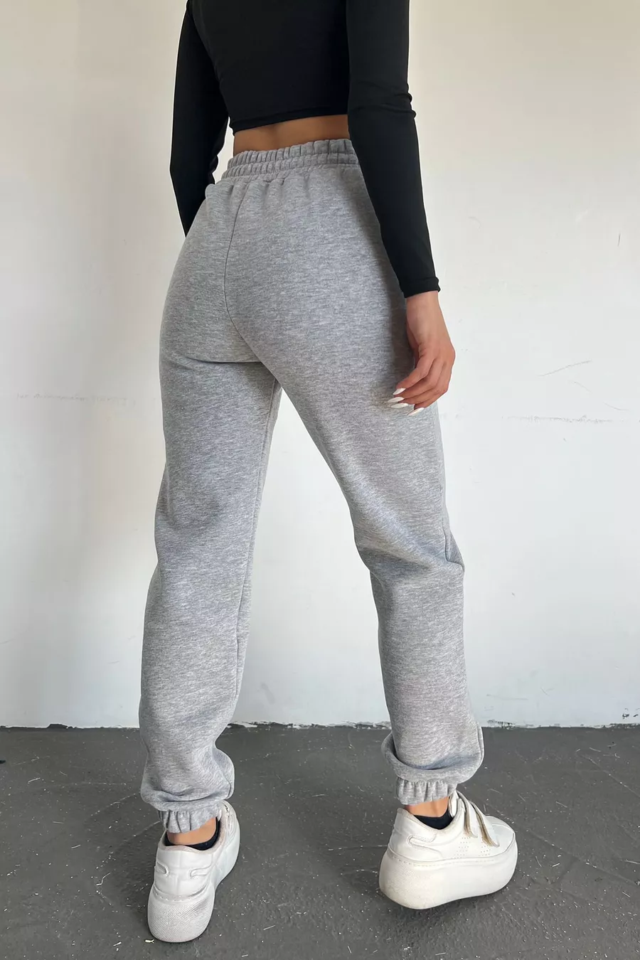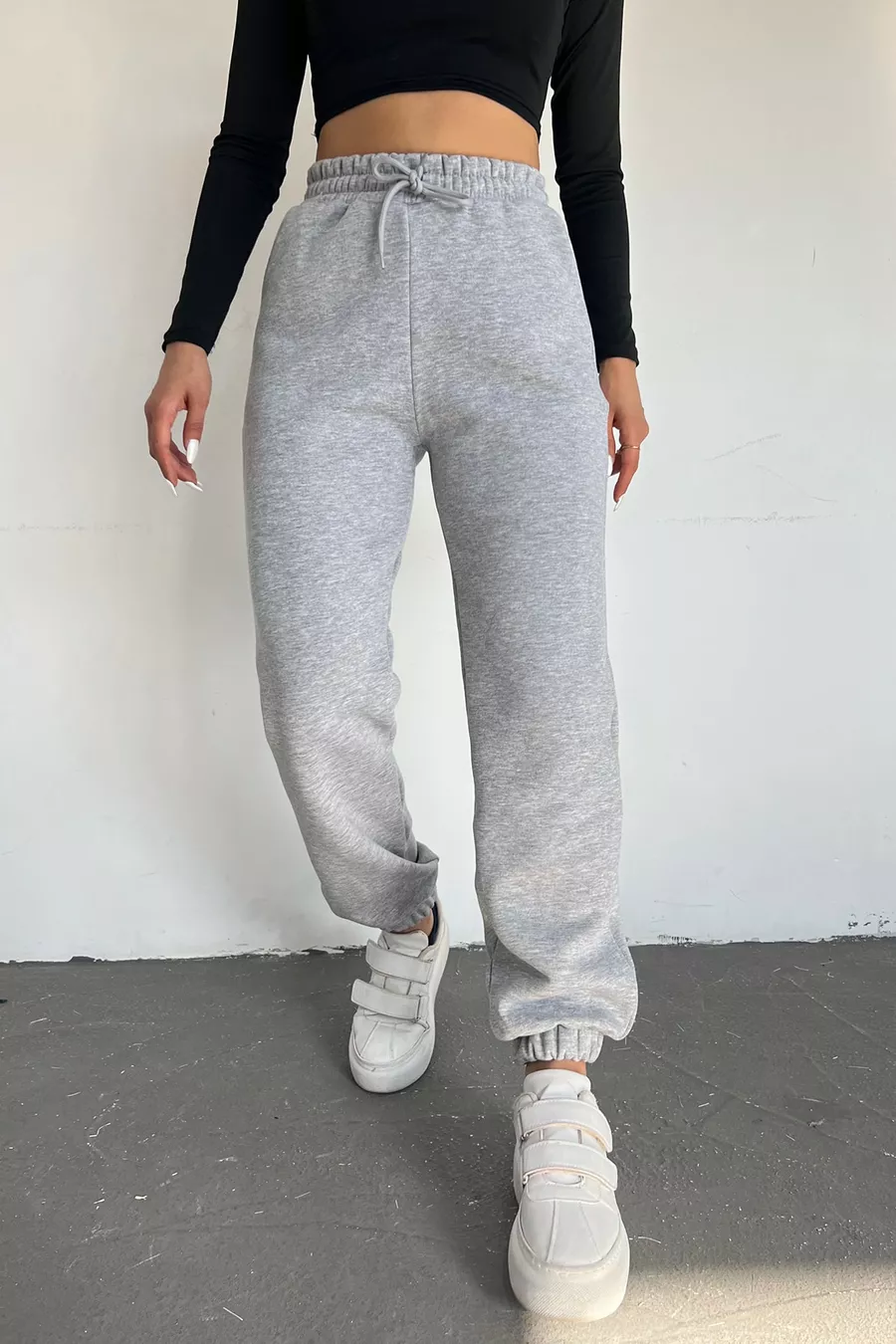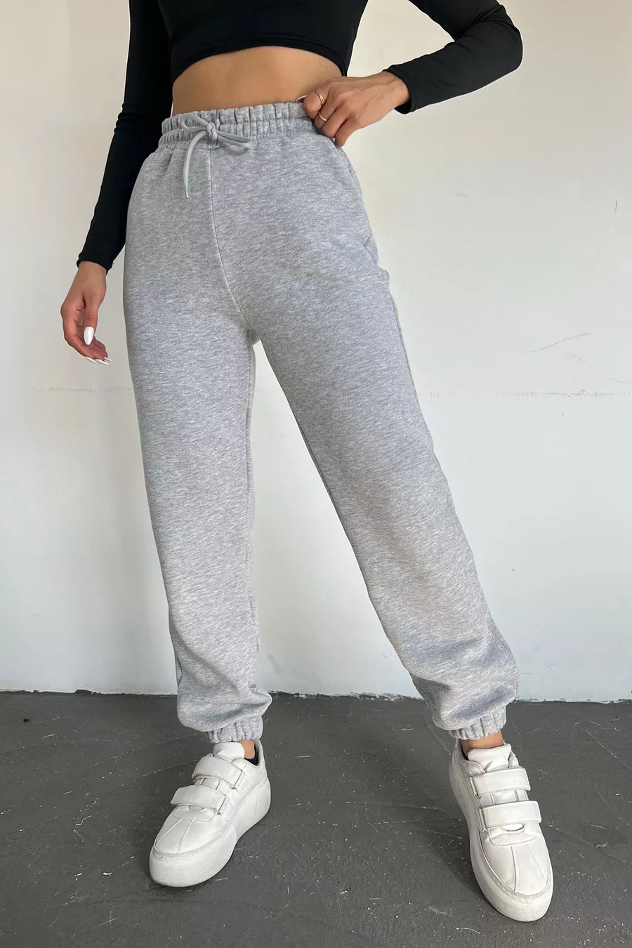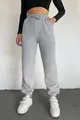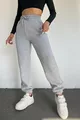 Pantaloni della tuta da donna grigi invernali, spessi, foderati in pile, vita alta, fondo gamba con elastico, jogger basic