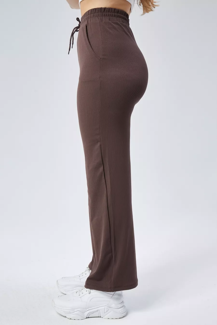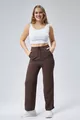 Pantaloni della tuta da donna Curve marroni con doppie tasche, vita elasticizzata, gamba a tubo con costine