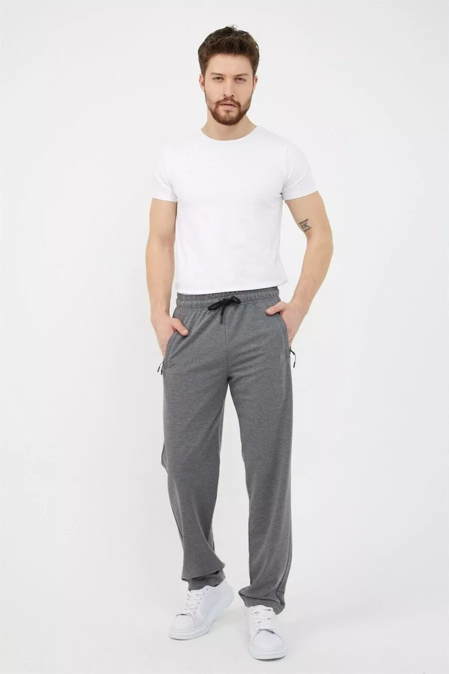 Pantaloni della tuta da uomo antracite, gamba dritta, tasche con cerniera, taglio comodo, tessuto premium