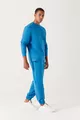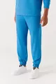 Pantaloni della tuta da uomo blu scuro con coulisse in vita, tasche laterali e fondo con elastico, in cotone doppio filato