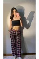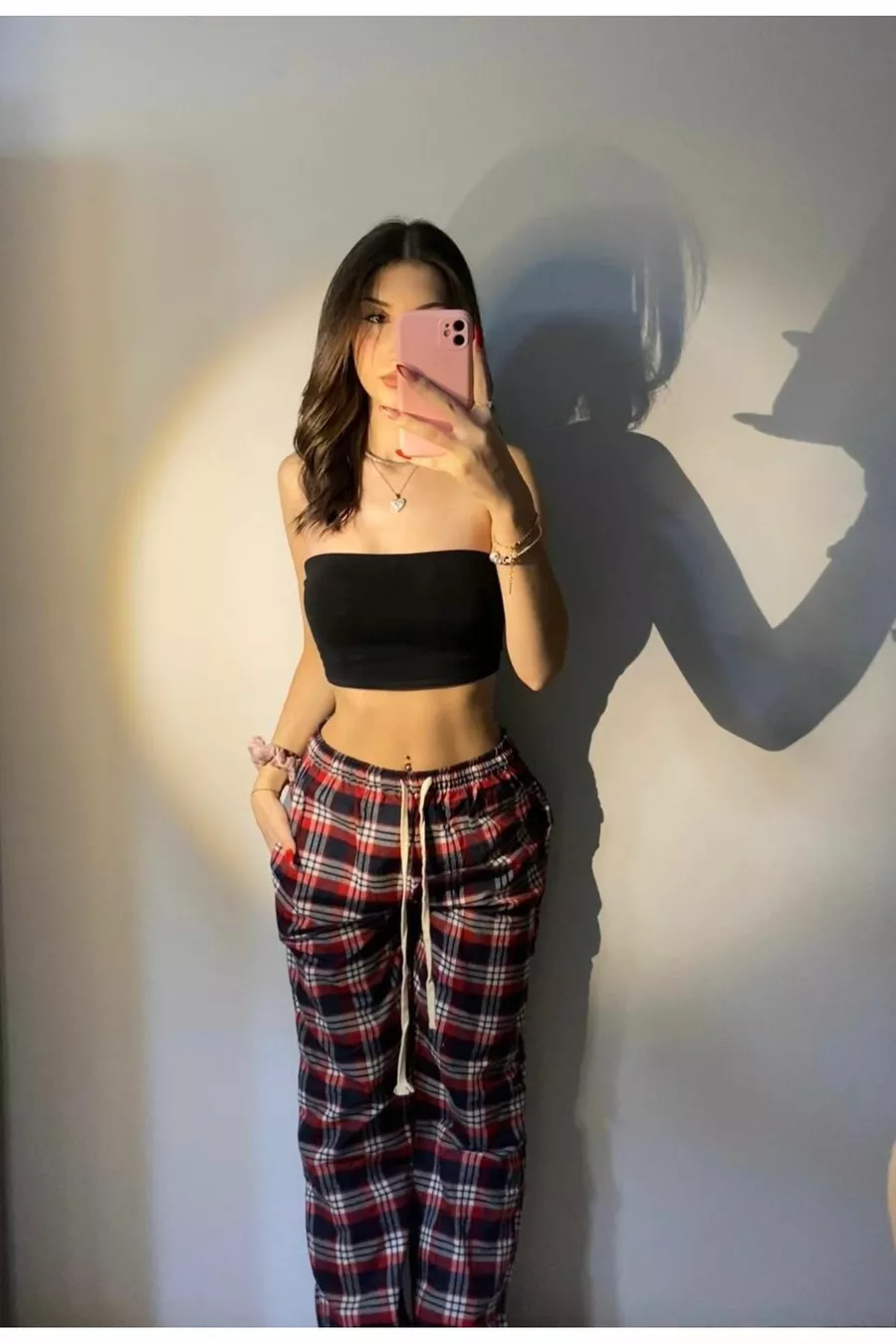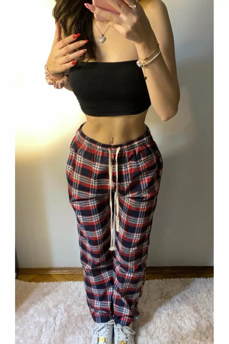 Pantaloni della tuta pigiama unisex oversize comodi con motivo a quadri rosso e blu scuro