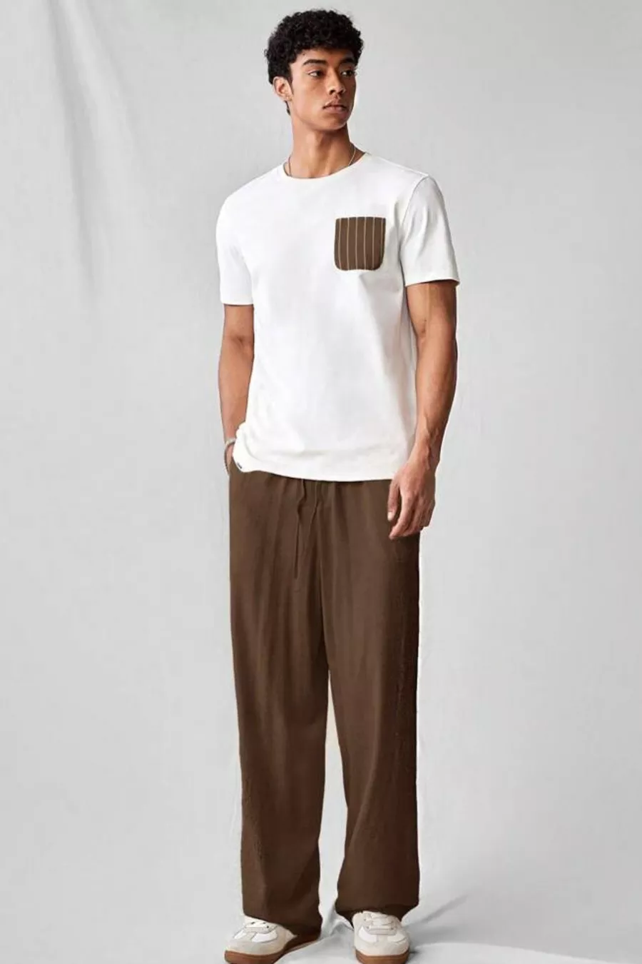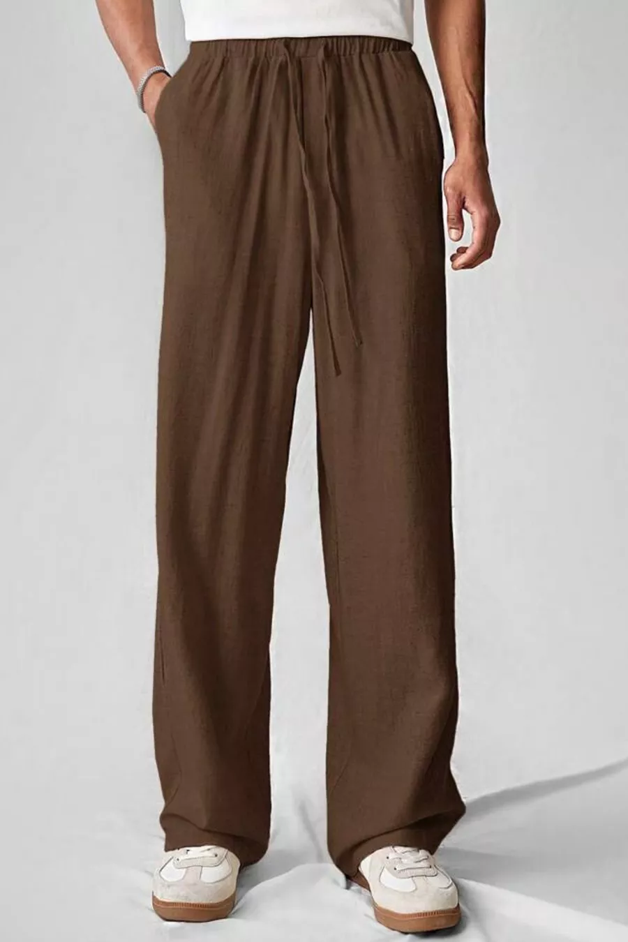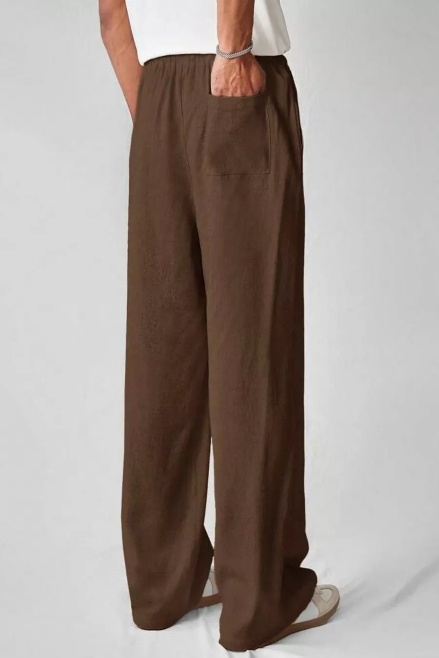Materiale: Lino Tipo di tessuto: Lino Tipo di gamba: Gamba ampia Vita: Vita normale Motivo: Tinta unita Colore: Marrone Tasche: Due tasche Dettaglio prodotto: Con dettaglio annodato Collezione: Lino Spessore: Sottile Fodera: Senza fodera Lunghezza: Lunga Silhouette: Vita elastica Occasione: Quotidiana Vestibilità: Oversize Caratteristica aggiuntiva: Non forma pallini Tipo di tessitura: Misto lino Persona: Fresco & Comodo Tecnica stampa/ricamo: Senza stampa Cintura: Con cintura Dettaglio sostenibilità: Sì Composizione materiale: Misto lino Istruzioni lavaggio: 30 gradi Stagione: Estate Origine: TR Condizione scatola: Nessuna scatola Chiusura: Con laccio / fiocco