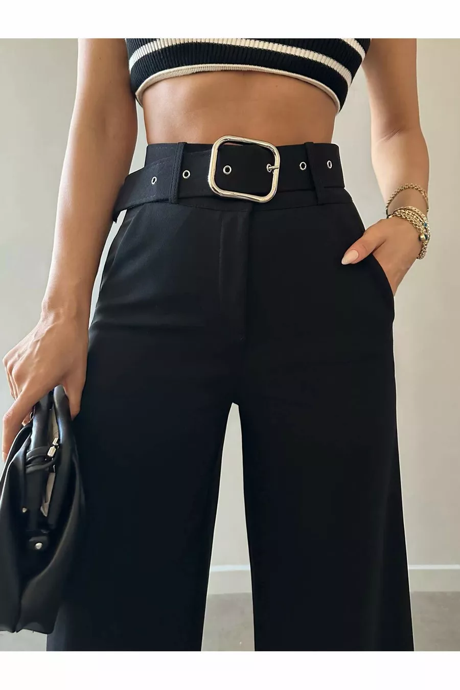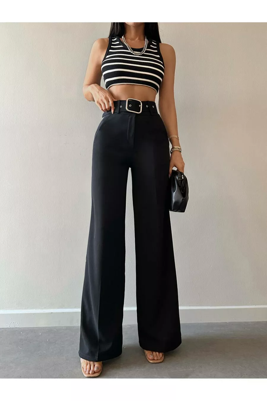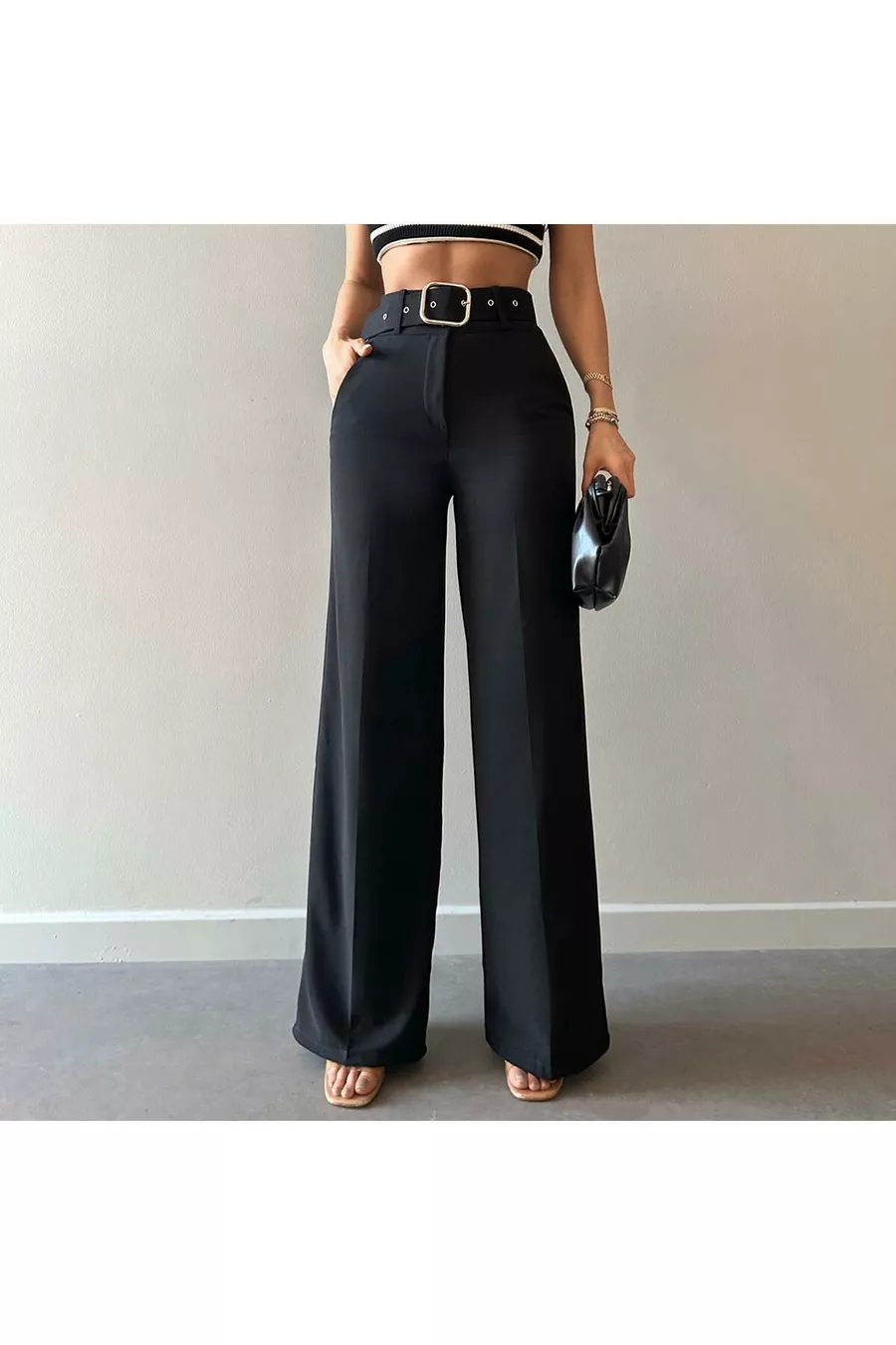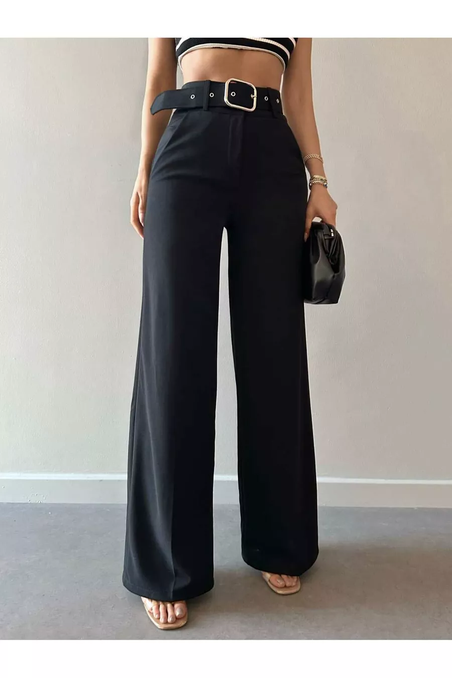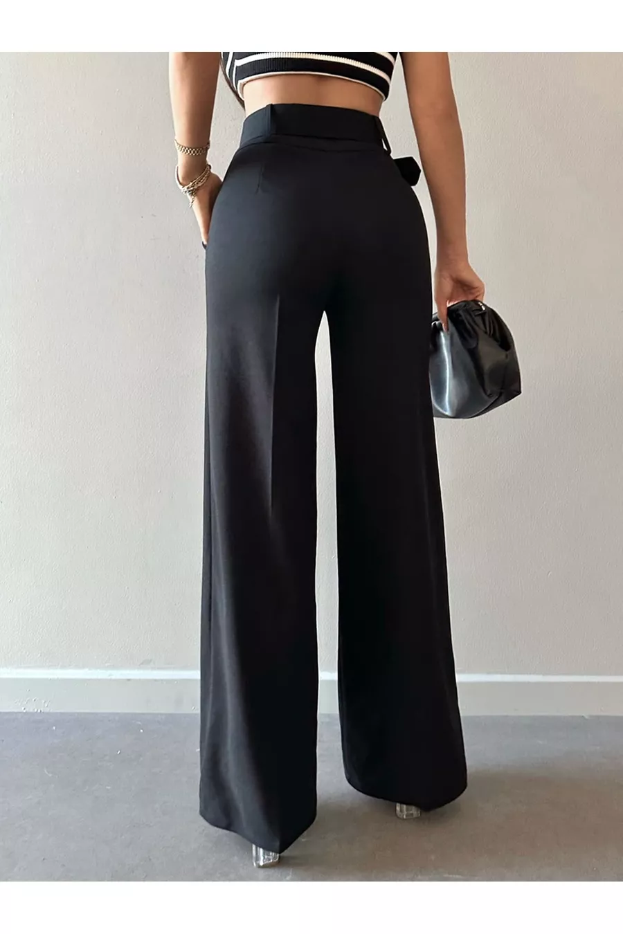 Pantaloni Palazzo Neri Eleganti a Gamba Larga con Cintura - Design Raffinato e Moderno