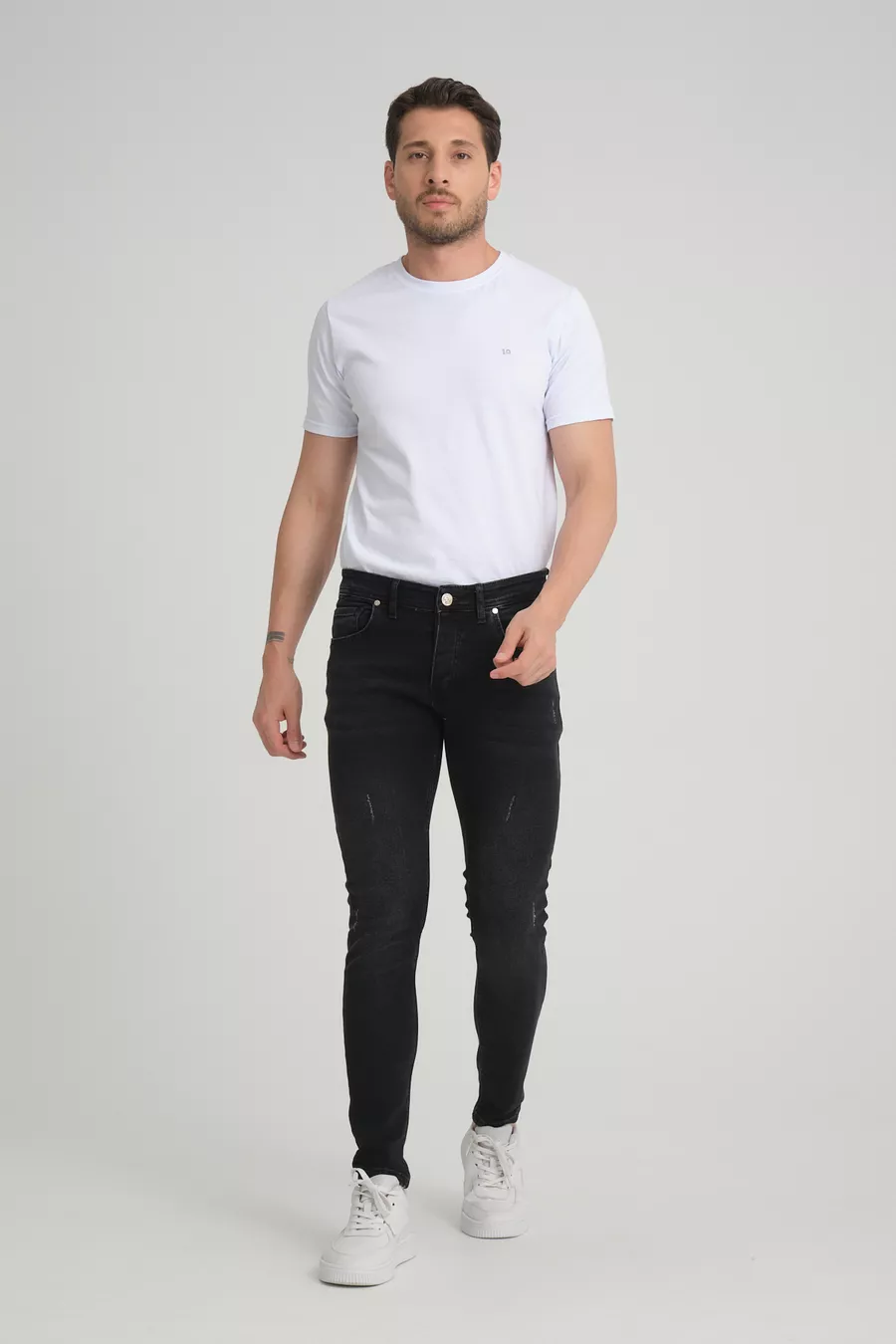 Materiale: Cotone Tipo di tessuto: Denim Tipo di gamba: Gamba stretta Vita: Vita normale Motivo: Tinta unita Colore: Nero Tasche: 5 tasche Dettaglio prodotto: Tessuto denim Collezione: Denim Spessore: Medio Fodera: Senza fodera Altezza: Regular Sagoma: Skinny Ambiente: Quotidiano Taglio: Skinny Caratteristica aggiuntiva: Elastico Tipo di tessitura: Rigido Persona: Cool & Comfort Tecnica di stampa/ricamo: Senza stampa Condizione cintura/cintura inclusa: Senza cintura Dettaglio sostenibilità: No Composizione materiale: 98% Cotone, 2% Lycra Istruzioni di lavaggio: 98% Cotone, 2% Lycra Lavare al rovescio a 30 gradi Stagione: Tutte le stagioni Origine: TR Condizione confezione: Senza scatola Tipo di chiusura: Chiusura a bottoni completa Contenuto del pacchetto: Singolo