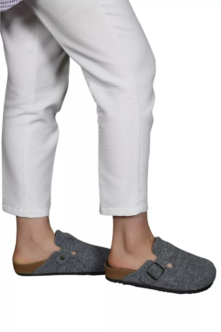 Pantofole da casa in feltro chiuso davanti unisex invernali importate, pantofole per ospiti grigie