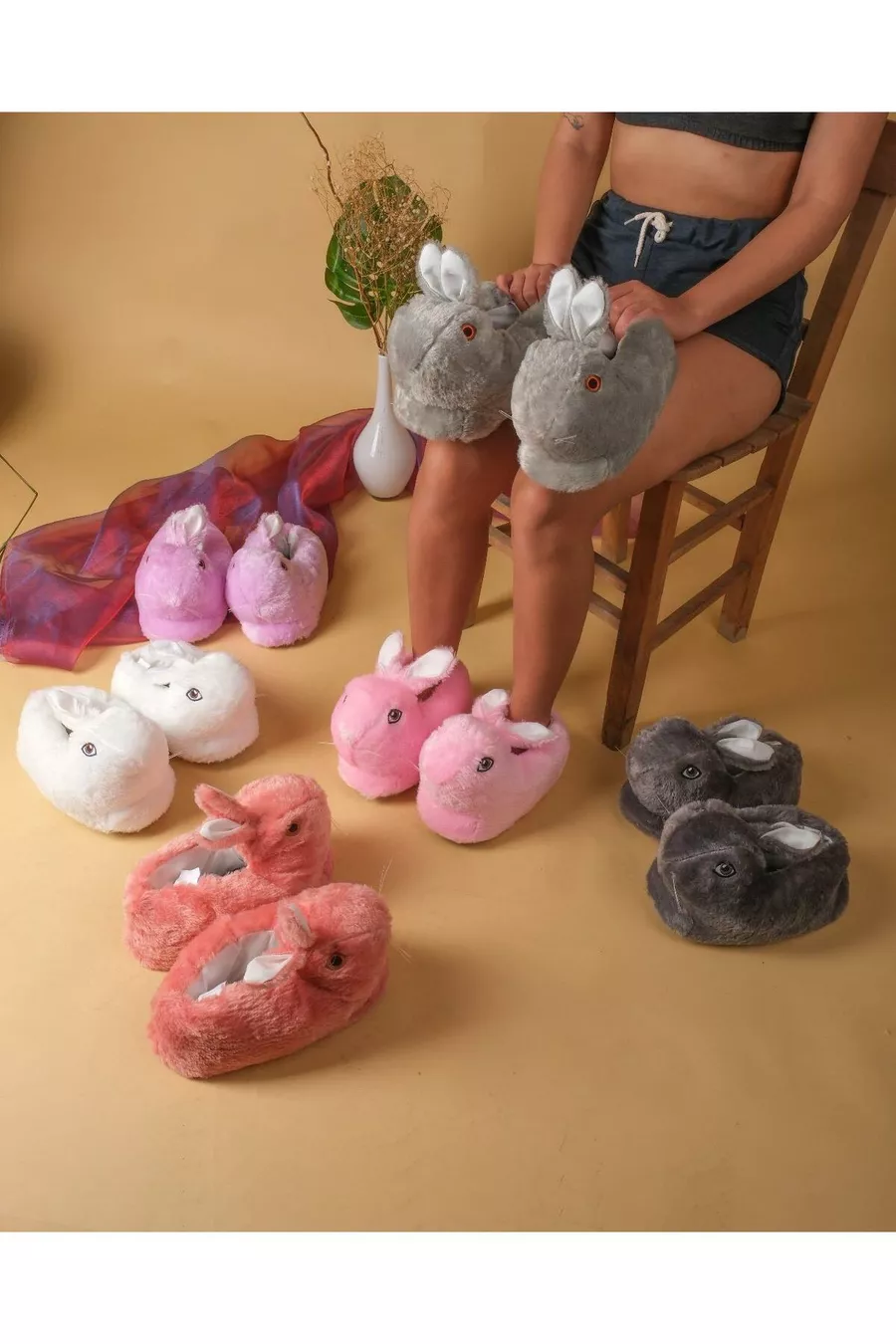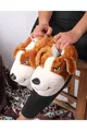 Pantofole da casa unisex color tabacco con pupazzo di cane peloso, suola antiscivolo, soffici e peluche
