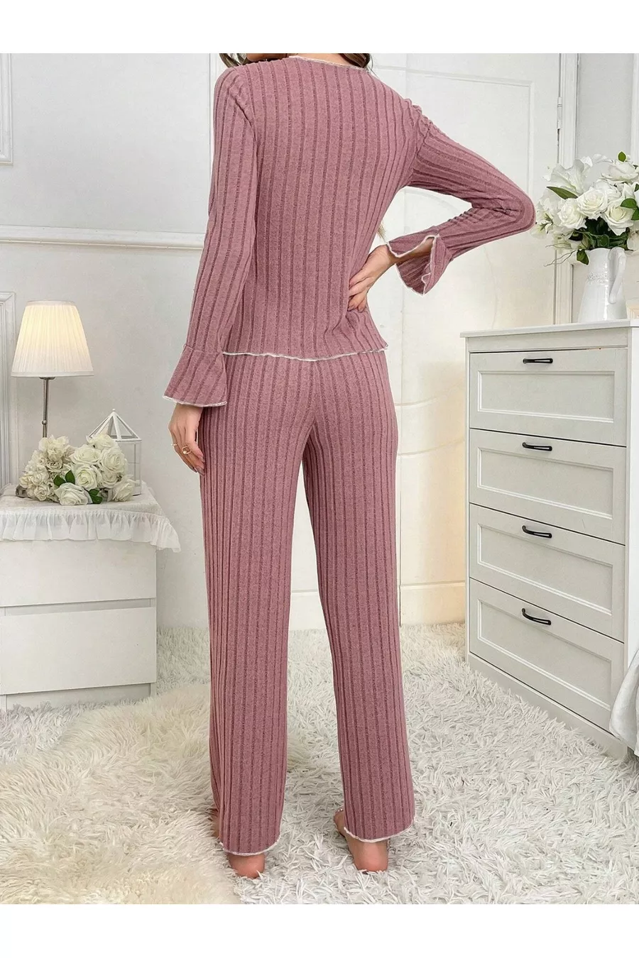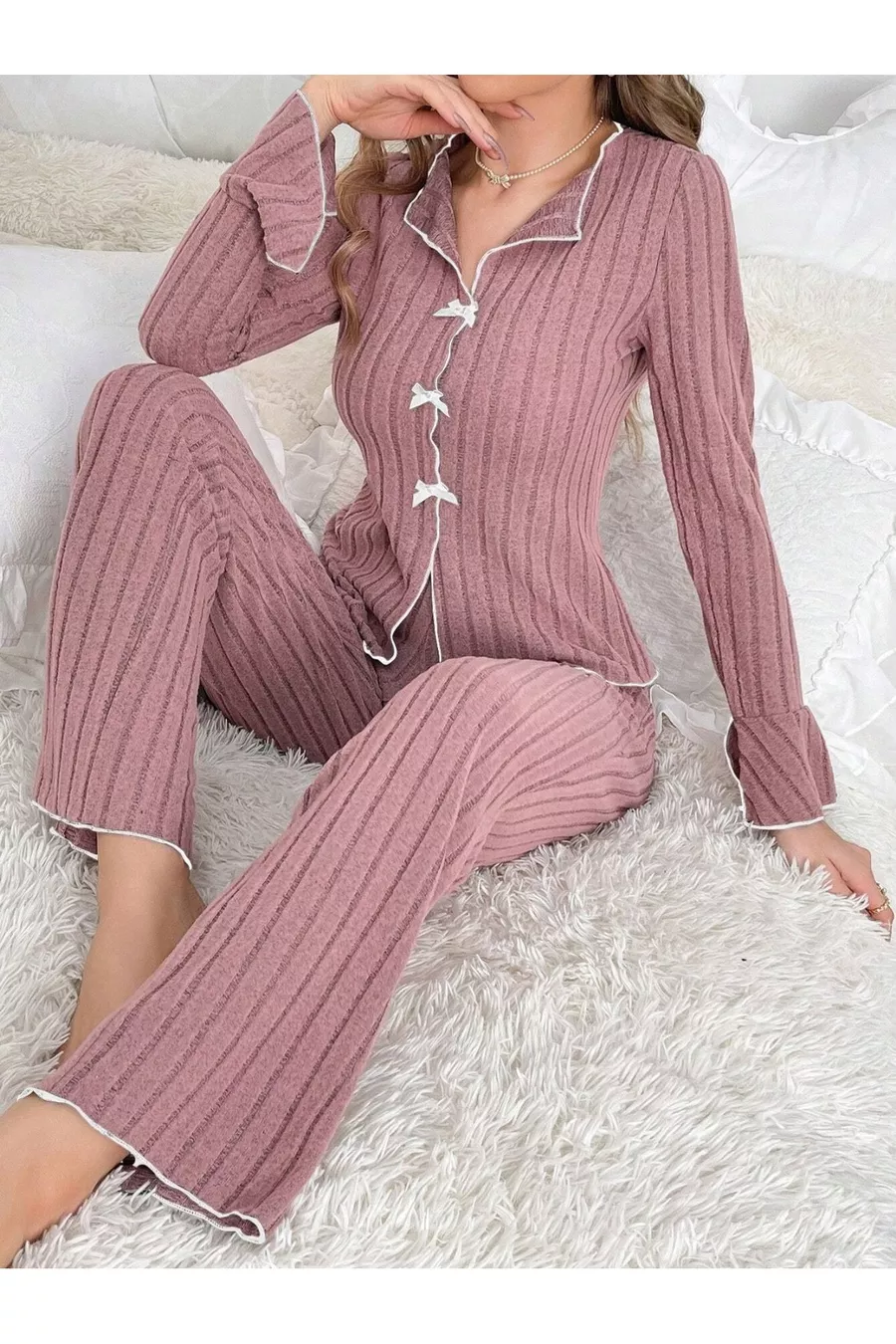 Pigiama a Maniche Lunghe con Balze Colore Rosa Polveroso
