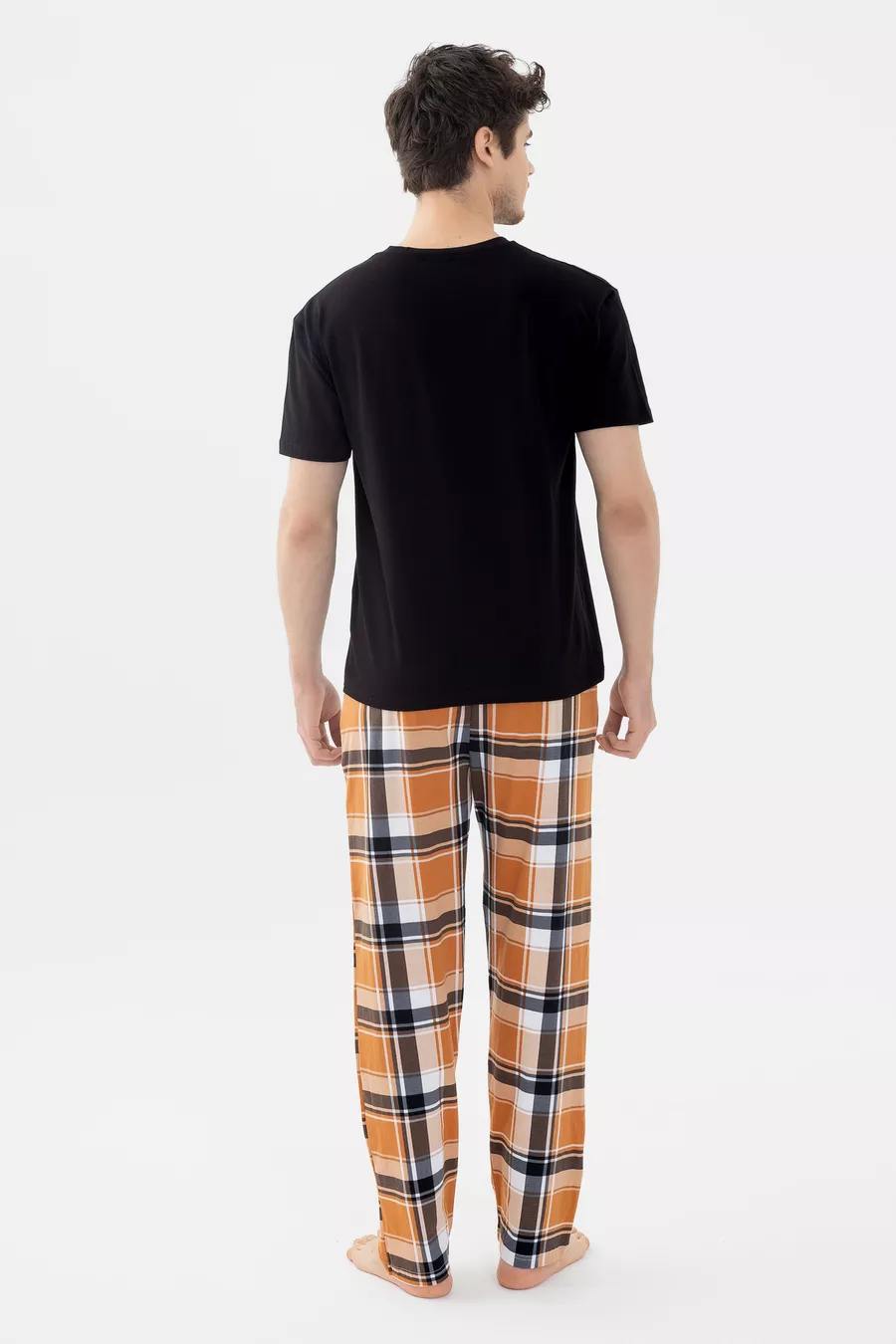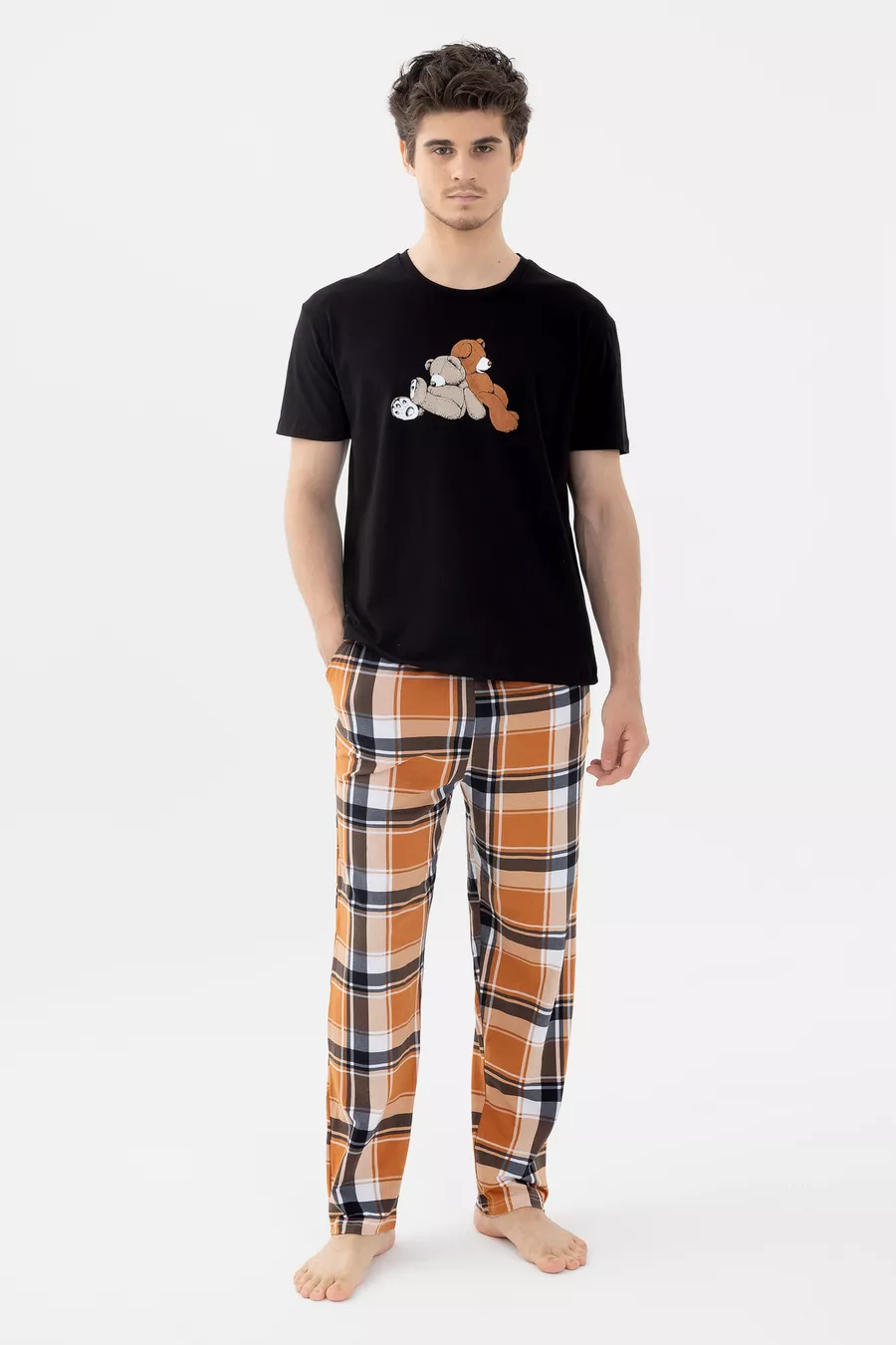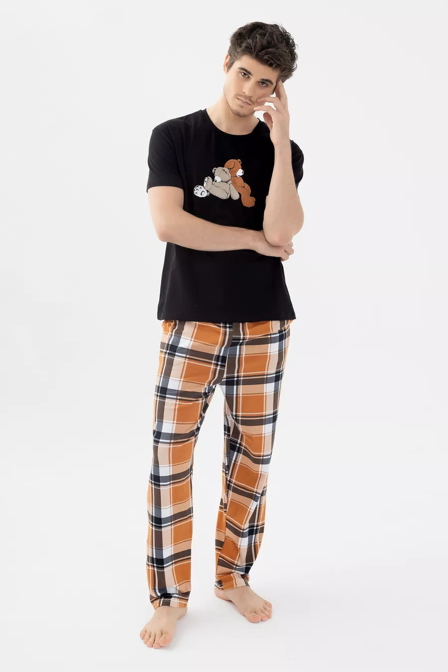 Pigiama da uomo a maniche corte in cotone con motivo a quadri e stampa orsetto