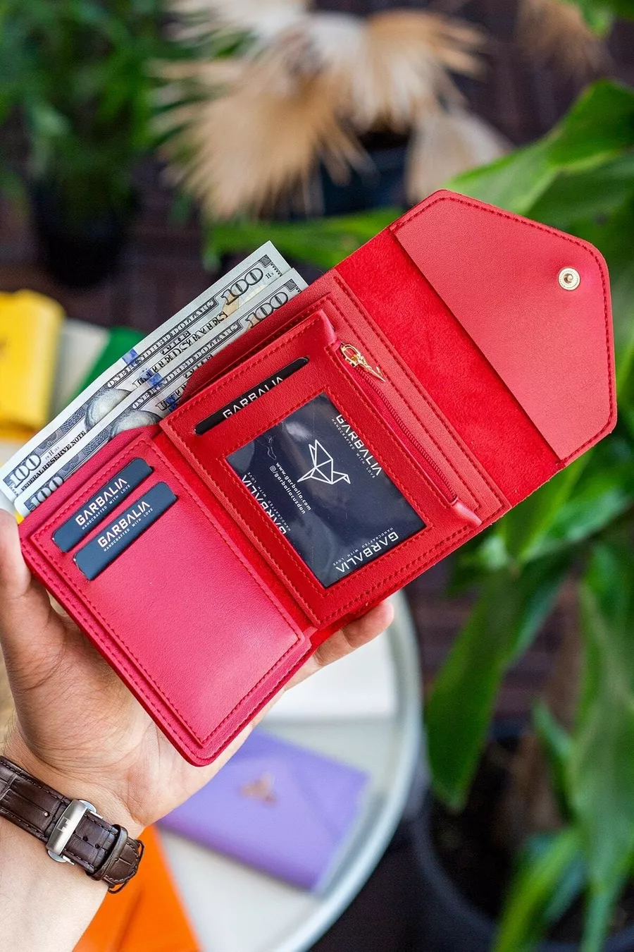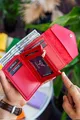 Portafoglio mini rosso da donna Colombia in pelle vegana con occhiello per monete e numerose tasche per carte