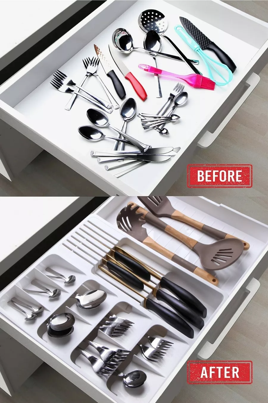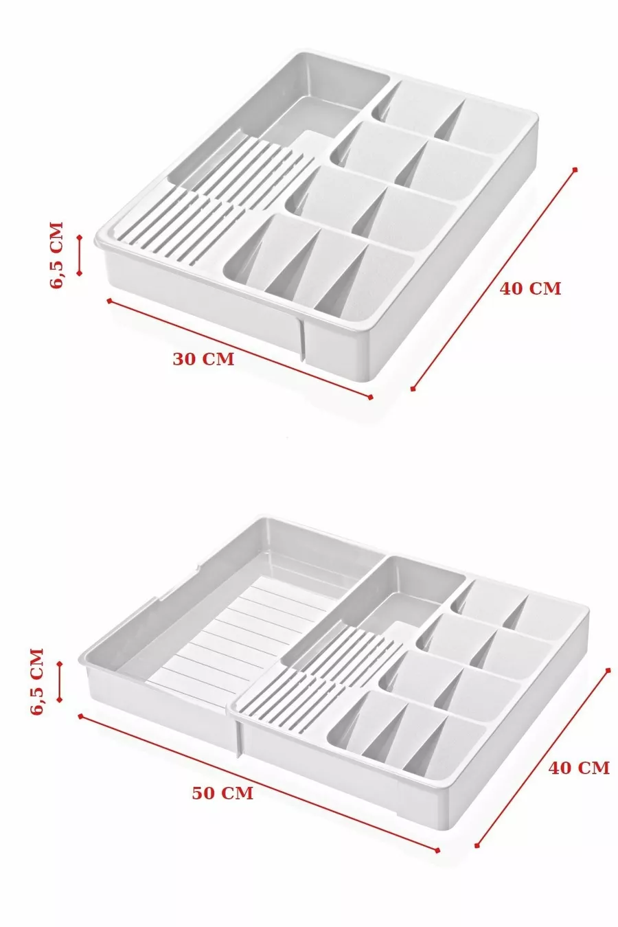 Portaposate e porta coltelli estraibile maxi regolabile con slitta interna del cassetto bianco