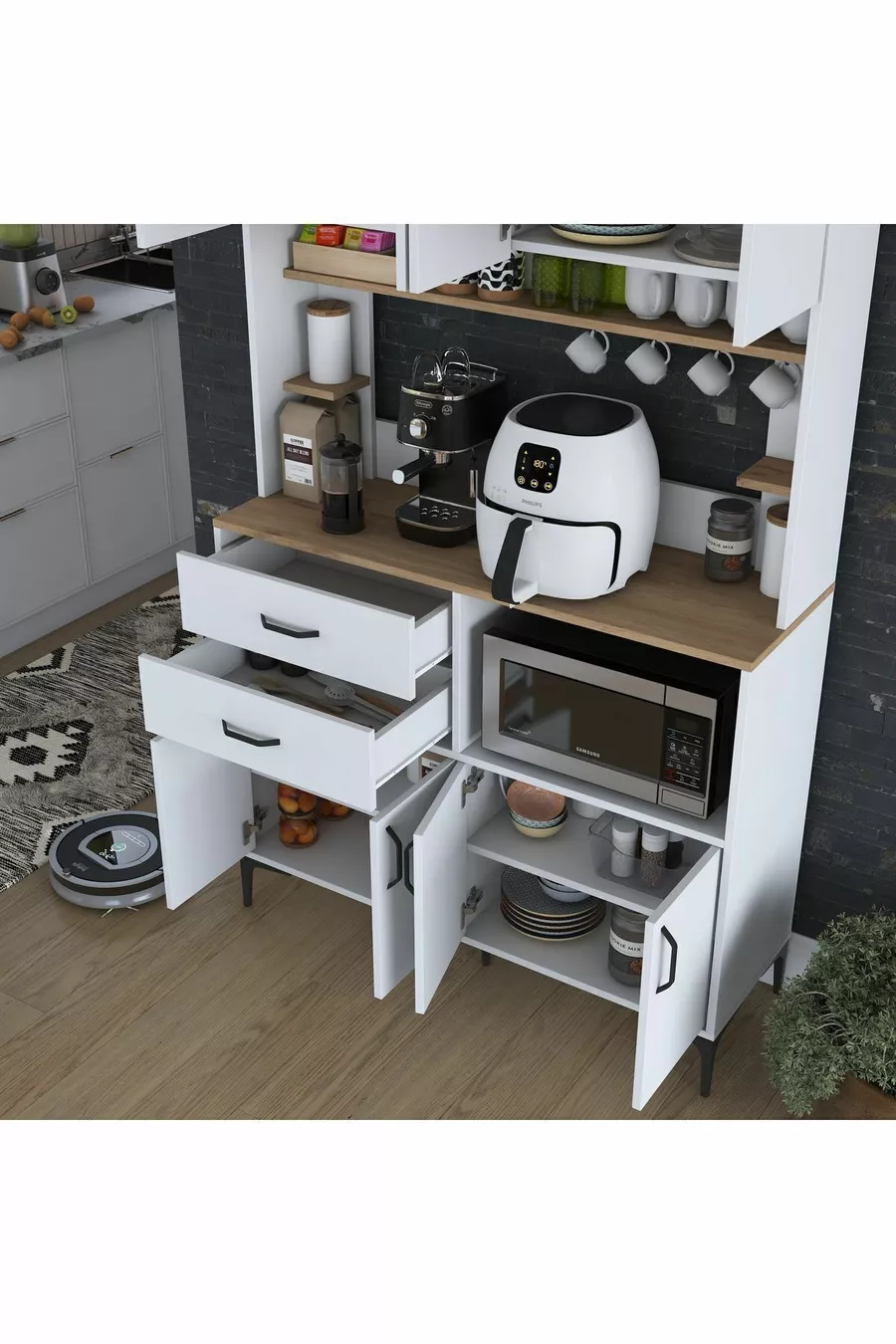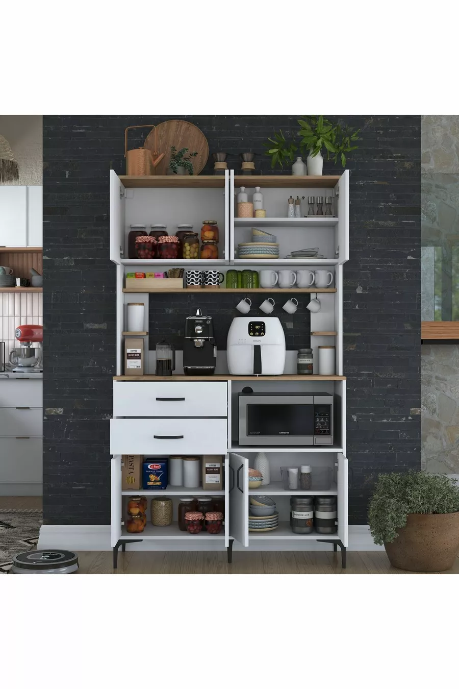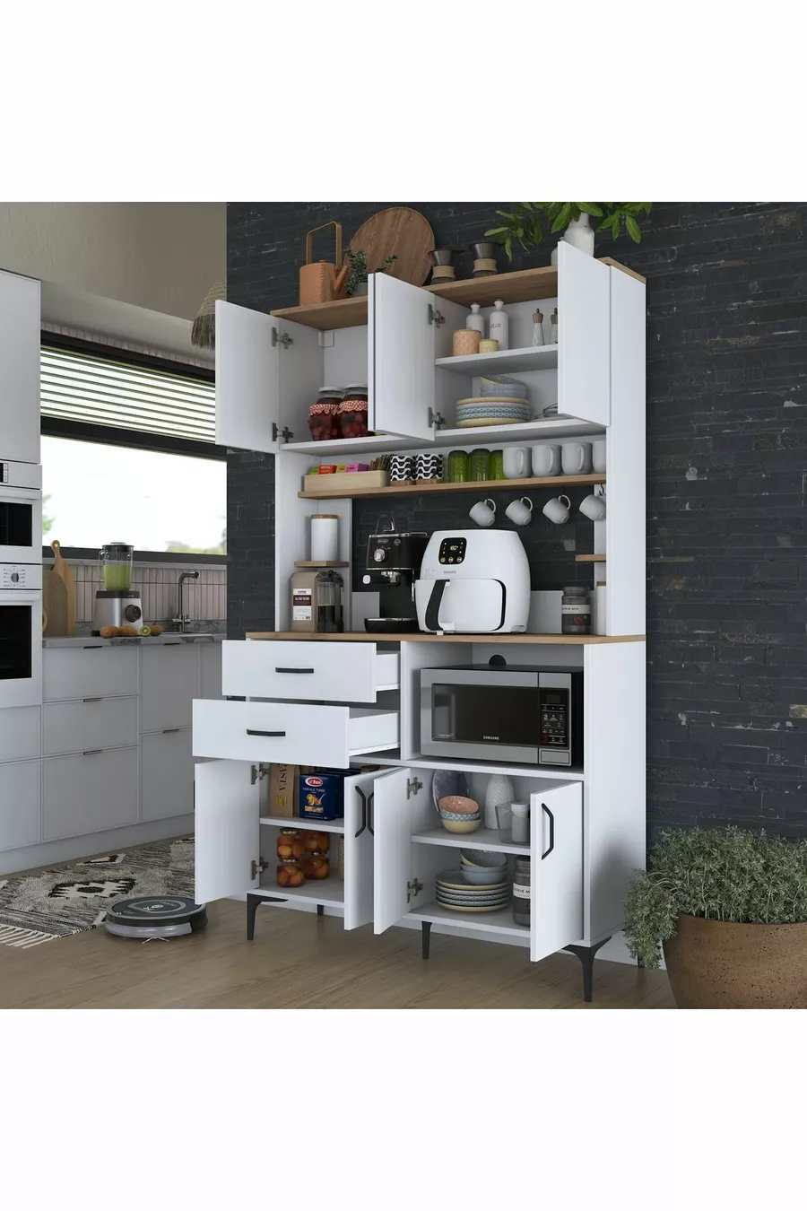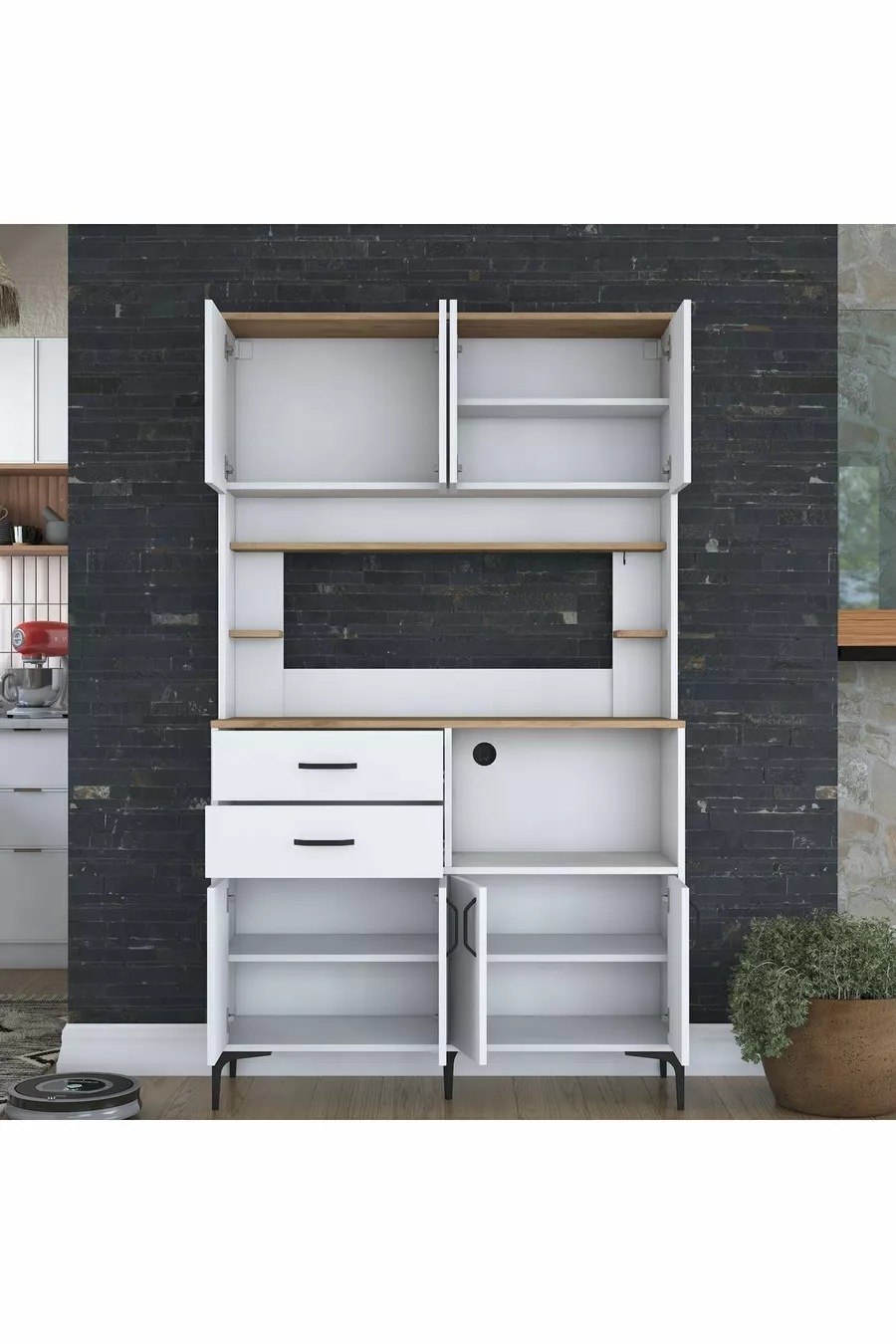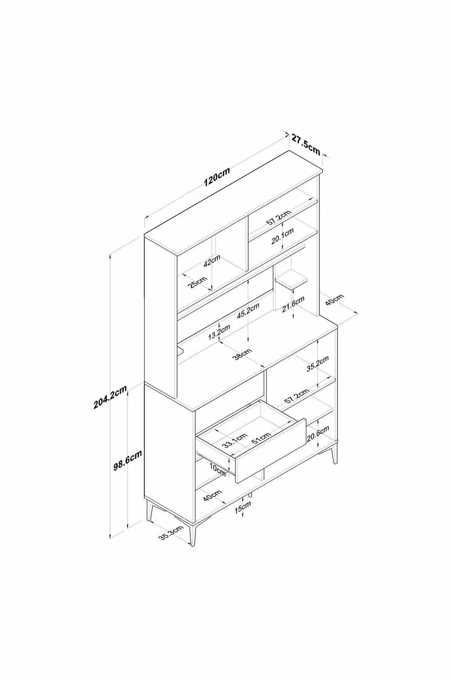 Materiale: Truciolato laminato Numero di cassetti: Multiplo Colore: Marrone Altezza: 204 cm Larghezza: 120 cm Profondità: 40 cm Periodo di garanzia: 2 anni Stile: Moderno Tema / Stile: Moderno Origine: TR Caratteristica: Con cassetti